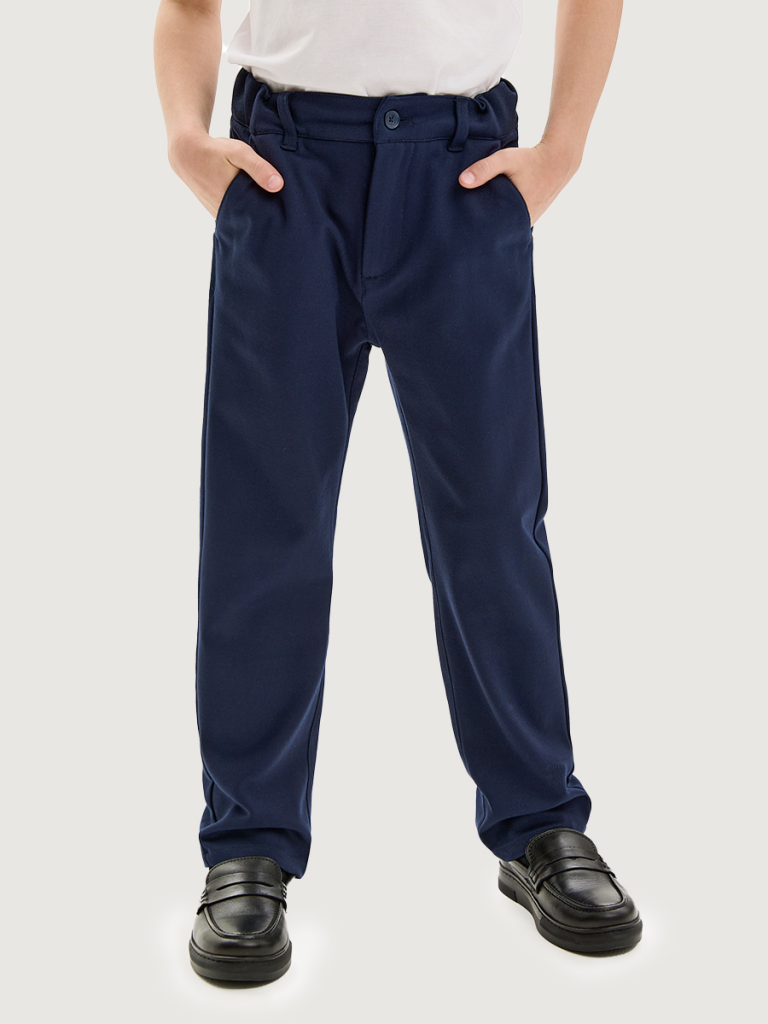 Базовые брюки - обязательный элемент гардероба современного школьника. В меру зауженные к низу, они станут прекрасной основой для повседневных образов.