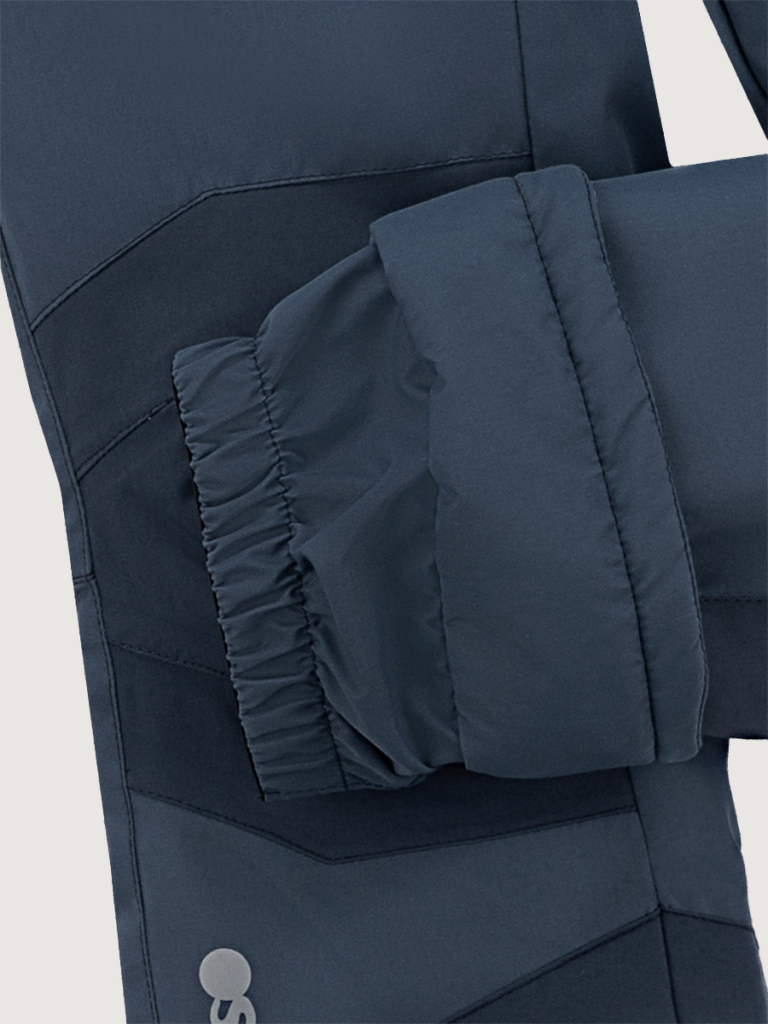 Мы продумали все до мелочей поэтому, область колен и шов сидения проклеены, места повышенного трения выполнены из особо прочной ткани, снегозащитные муфты по низу брюк, светоотражающие элементы для безопасности ребенка в темное время суток. Комфортная температура эксплуатации от 0° до -30° С.
