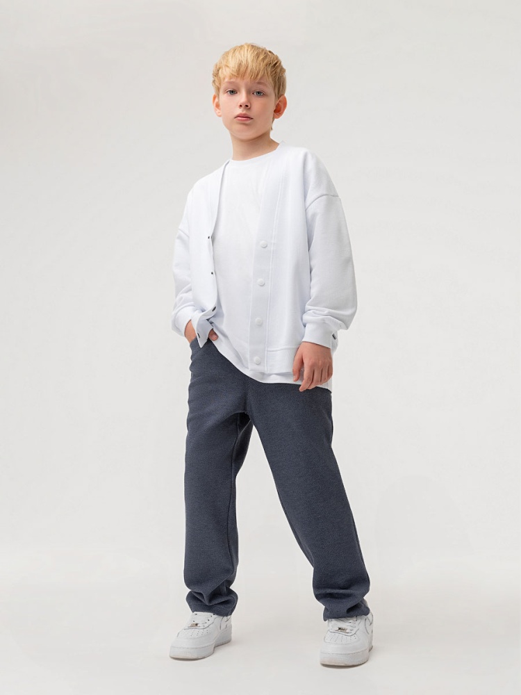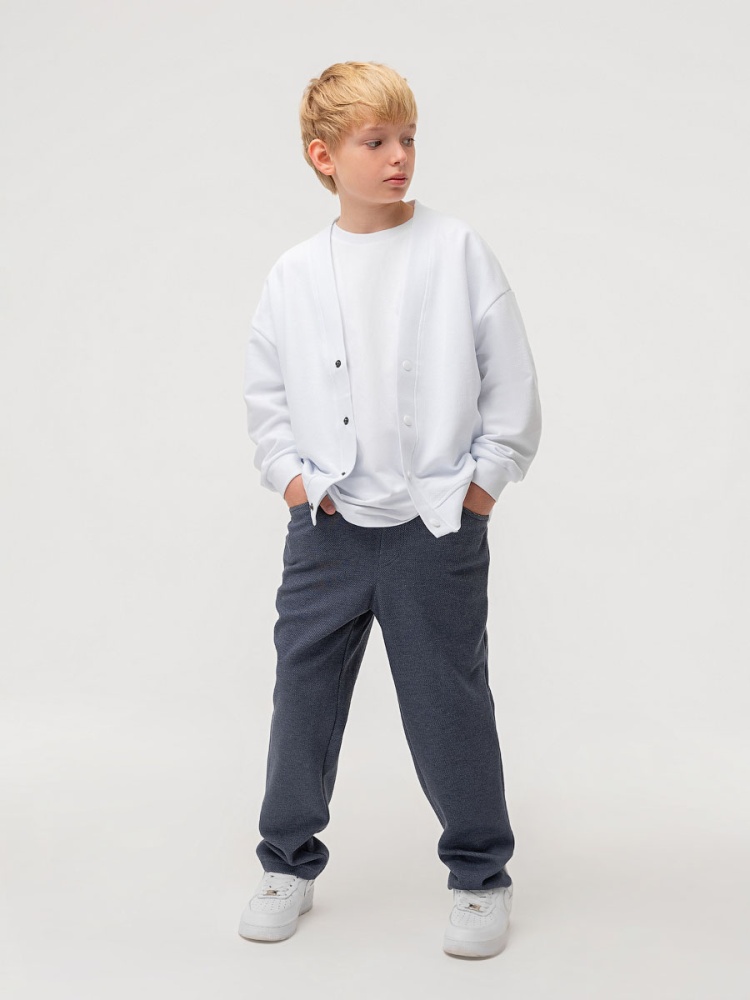 Брюки прямые слегка зауженные к низу на притачном поясе с внутренней резинкой. Брюки с боковыми карманами.