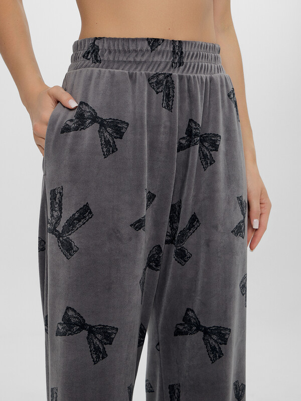 Карманы в боковых швах, внутри карманов основное полотно. Низ брюк обработан швом вподгибку.