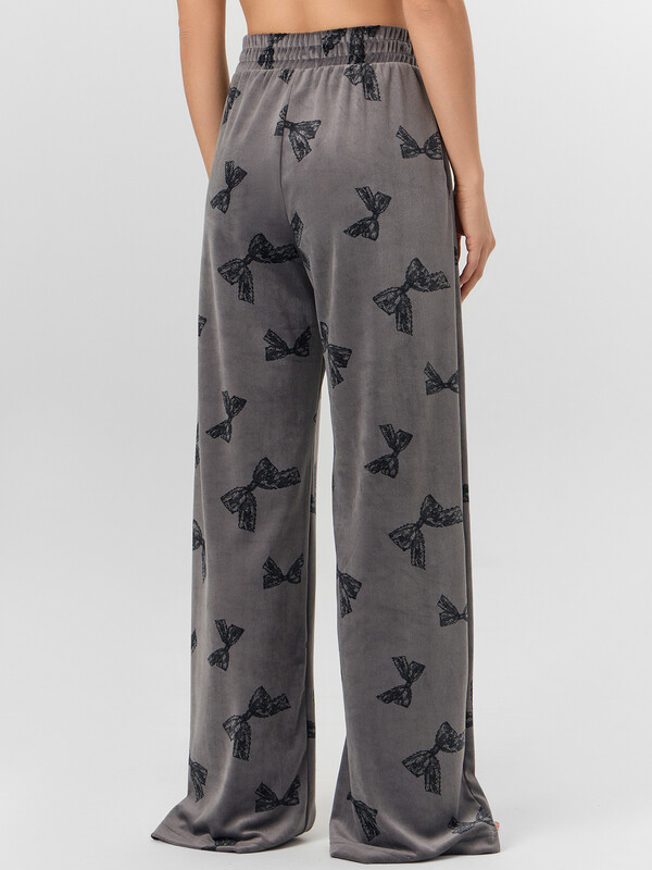 Брюки свободного силуэта с высокой посадкой в пол. Пояс цельнокроенный с эластичной тесьмой внутри 50RV. По поясу сделаны 2 отделочные строчки.