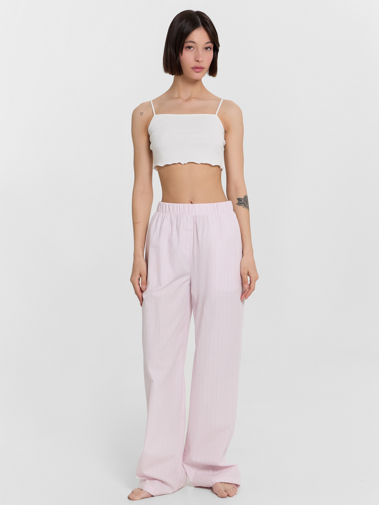 Женские домашние брюки — это комфортная и практичная модель, идеально подходящая для создания уюта и расслабленности дома. Свободный силуэт обеспечивает легкость и свободу движений, что особенно важно для домашней одежды. Эластичный пояс гарантирует удобную посадку, а планка спереди с имитацией застежки добавляет дизайну стильность и интересный акцент. Боковые карманы делают модель еще более функциональной, предоставляя место для хранения мелочей. Нижние срезы брюк обработаны швом вподгибку, что подчеркивает качественное исполнение и долговечность изделия. Материал изделия — натуральный хлопок, который отличается мягкостью, воздухопроницаемостью и приятностью на ощупь. Хлопок идеально подходит для домашней одежды благодаря своей способности обеспечивать комфорт даже при длительной носке. Эти брюки станут отличным выбором для отдыха дома, сочетая в себе практичность, стиль и естественный комфорт. Рекомендуем для вашего домашнего гардероба!