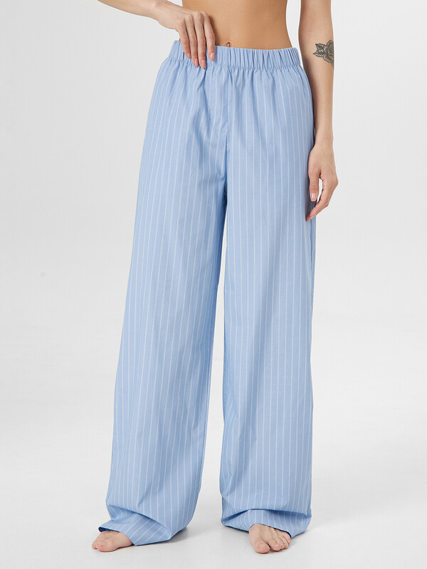 Брюки белые полосы на т.голубом