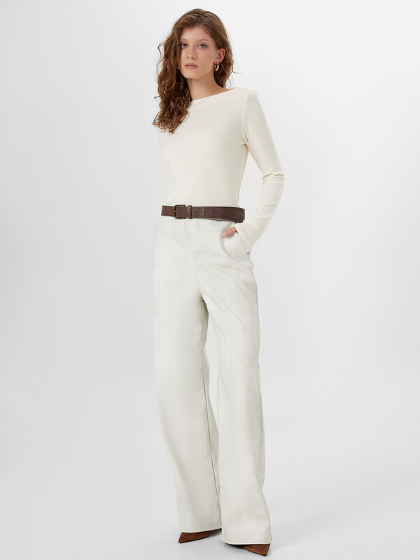 Эти женские брюки из экокожи подходят для создания как casual-образов, так и вечерних луков. Материал легко чистится и сохраняет форму после носки. Универсальная модель сочетается с объемными свитерами, кроп-топами или классическими блузами. Практичность и выразительный дизайн делают их must-have для осеннего гардероба.