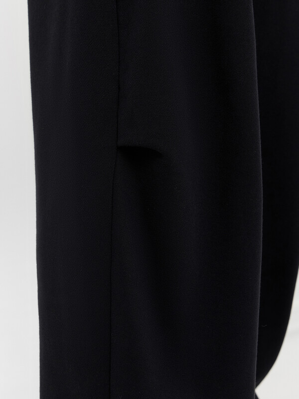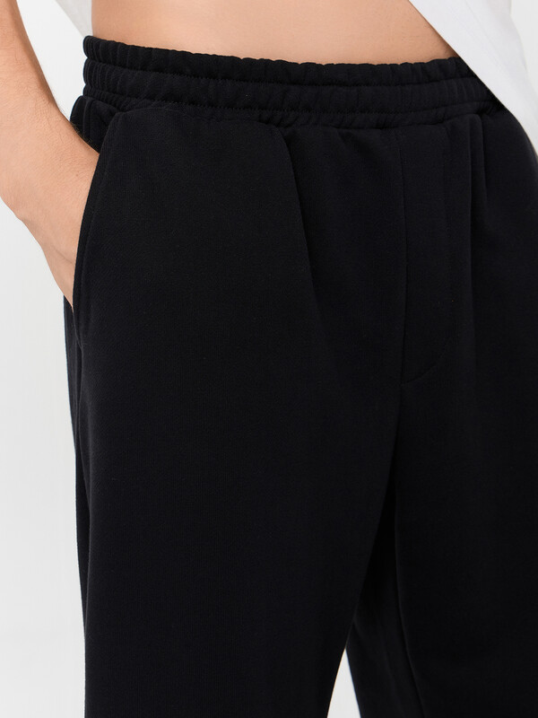Удобные прорезные карманы спереди скрыты в боковых швах — в них можно хранить телефон или ключи. Дополнительные складки от колен добавляют брюкам легкости и комфорта при ходьбе. Нижний край брюк аккуратно подогнут для опрятного вида и долговечности.
