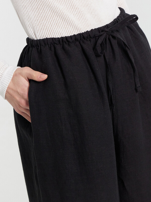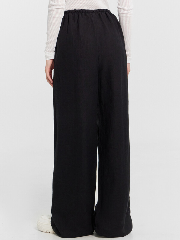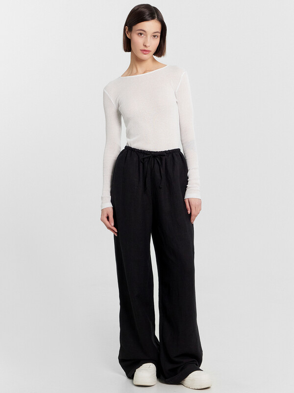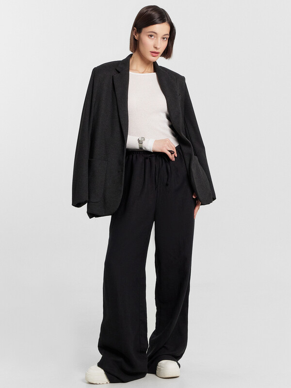 Женские брюки свободного силуэта станут идеальным дополнением вашего гардероба. Модель с эластичным поясом на кулиске и боковыми карманами обеспечивает максимальный комфорт и практичность в носке. Эти брюки выполнены из натурального льна и вискозы, что делает их особенно приятными к телу. Натуральный лен известен своими дышащими свойствами и способностью сохранять прохладу в жаркую погоду. Он также гипоаллергенен и экологически чист. Вискоза, в свою очередь, добавляет ткани мягкость и легкий блеск, обеспечивая дополнительный комфорт и стиль. Такие брюки идеально подойдут для создания как повседневных, так и более нарядных образов.