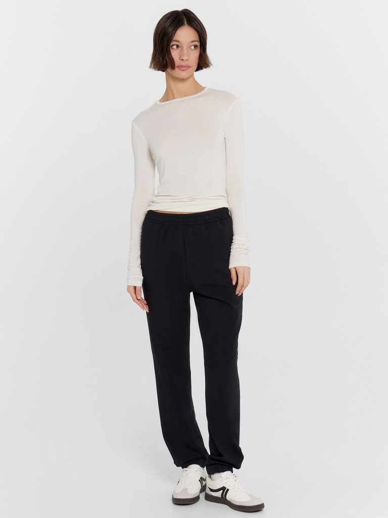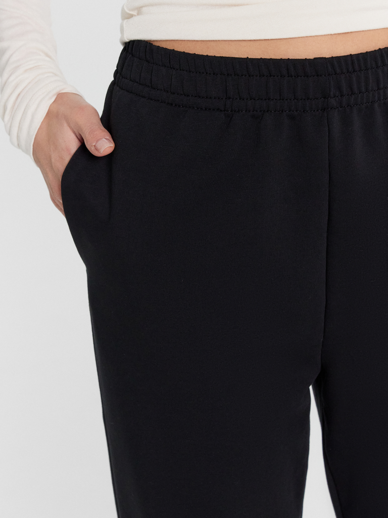 Эти женские брюки идеально дополнят ваши спортивные образы! Модель с боковыми карманами и эластичным поясом выполнена из мягкого футера без подчеса, который обладает рядом преимуществ. Этот материал хорошо сохраняет тепло, не вызывает раздражения кожи и отличается высокой износостойкостью. Он обеспечивает отличную воздухопроницаемость, что делает брюки комфортными для повседневного ношения и занятий спортом. Брюки Mark Formelle станут отличным выбором для активного отдыха и повседневной жизни. Рекомендуем!