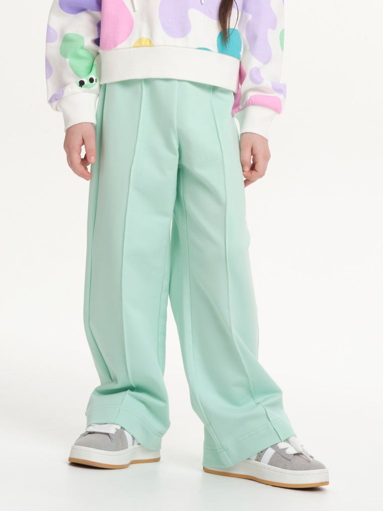 Палаццо без начеса для девочки подростка, подойдут для повседневной носки на занятия, в школу в сад и на прогулку. Брюки на резинке из высококачественного хлопкового футера можно носить круглый год весной, летом, осенью и зимой. Стильные и модные штаны идеальны для подарка на любой праздник.