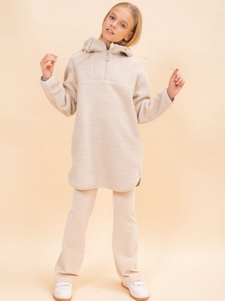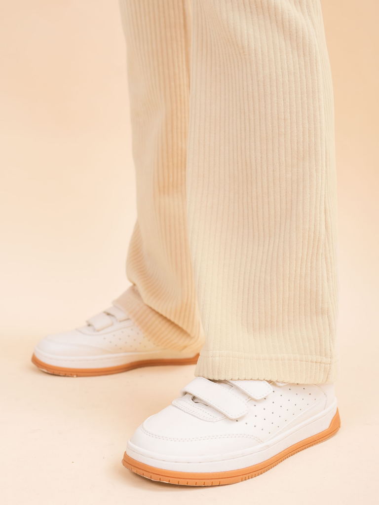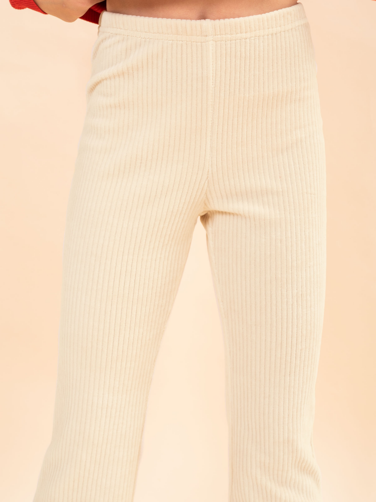 Детские брюки клеш из теплого вельвета для девочки представлены в молочном и синем цвете на выбор. Штаны отличаются уютной посадкой и мягкой, трикотажной тканью в рубчик. Изделие не стесняет движений, позволяя легко двигаться. Штаны клеш для девочки сшиты из мягкой хлопковой ткани с густым ворсом и рубчиками на лицевой стороне. Детские вельветовые брюки по фактуре похожи на бархатные. В составе вельвета преобладают хлопковые волокна с добавлением полиэстера и эластана. Хлопок наделяет брюки клеш хорошими гигиеническими свойствами, создает здоровый микроклимат. В такой одежде тепло и комфортно. Ребенок точно не замерзнет в осенне-зимний период. Плотный ворс вельветовых брюк хорошо защищает от зимнего ветра и морозов. Волокна полиэстера и эластана обеспечивают ткани высокую износостойкость, защиту от усадки и образования катышков. Вельветовые брюки удобны для прогулки в зимние каникулы, для активного отдыха, игр и спокойного времяпровождения. Модные клеши красиво смотрятся на разной фигуре и при любом росте. Удобные детские брюки на резинке представлены в размере для малышей, детсадовского возраста и для девочек подростков. Выбирайте детские вельветовые брюки в подарок для девочки на Новый год и Рождество. Пусть зимний сезон принесет детям только положительные эмоции! А теплые штаны из вельвета для девочки будут согревать самых любимых.