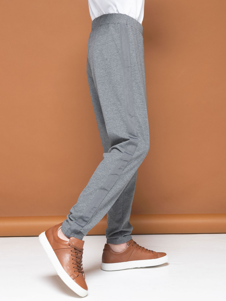 Трикотажные брюки для мальчика. Лёгкие и удобные. Простые в уходе, хорошо пропускают воздух. Слегка зауженные книзу, без манжет. Свободный низ брюк можно подвернуть или оставить мягкие складки. И то, и другое смотрится стильно и позволяет брать эти брюки на вырост. Объем в поясе можно регулировать внутренним шнурком. На боковых швах лампасы из репсовой ленты в тон изделия. Не ограничивают движения и выдержат любую активность на уроках физкультуры, тренировках, прогулках с друзьями.