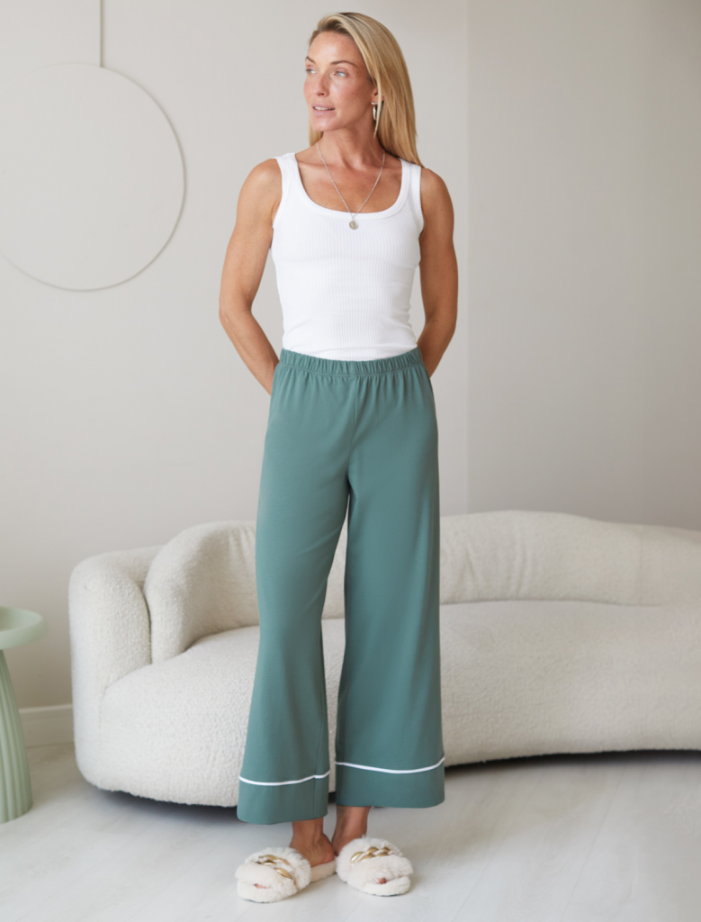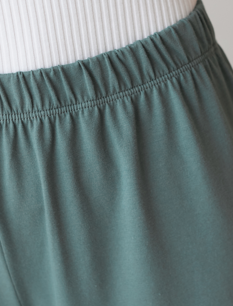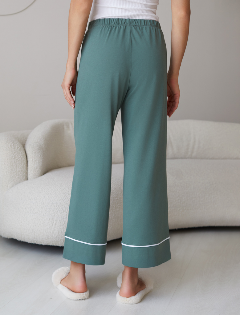 Укороченные брюки темно-оливкого цвета из мягкого эластичного хлопка подарят вам комфорт в любое время дня. Прямой крой обеспечивает свободу движений и удобство при носке. Материал приятен на ощупь, хорошо пропускает воздух и позволяет коже дышать, делая эти брюки идеальным выбором для повседневной носки. Широкие брюки прекрасно подойдут на женщин с фигурой плюс сайз, на высокий рост и на девушек низкого роста, создут гармоничный образ без стеснения движений. Представлены большие размеры. Контрастный кант по низу добавляет стильный акцент и возможность сочетать с белыми футболками нашего бренда. Эти брючки идеально подойдут тем, кто ищет стильное решение с учетом комфорта и удобства, в них вы будете женственны и утонченны даже в домашней обстановке.