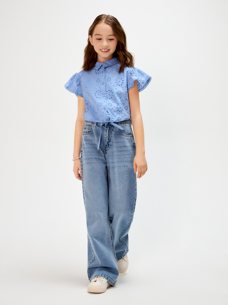 Брюки джинсовые детские для девочек Raichu1 голубой