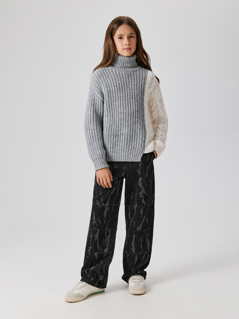 Брюки джинсовые (утепленные) детские для девочек Dvina черный принт