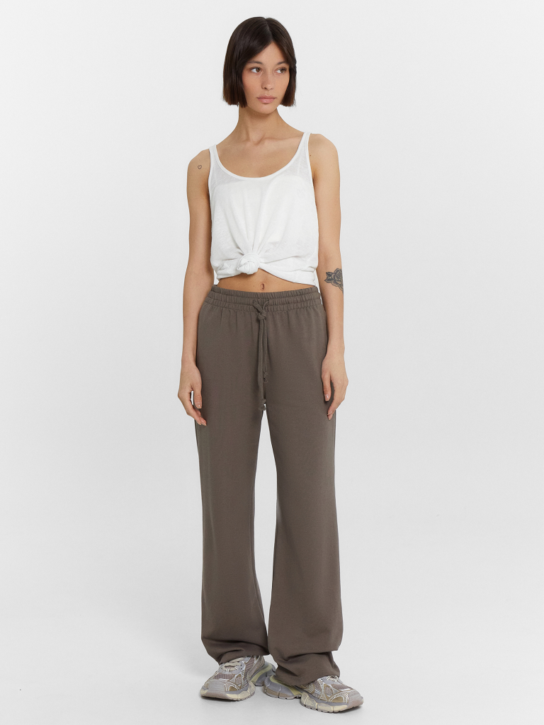 Эти женские брюки из футера — практичный и удобный вариант для повседневной носки. Прямой крой и средняя посадка обеспечивают свободу движений и универсальность модели. Эластичный пояс на кулиске позволяет комфортно регулировать посадку, добавляя удобства. Карманы в боковых швах с подкладкой из кулирки делают брюки функциональными и добавляют аккуратный акцент. Низ обработан швом вподгибку, что обеспечивает долговечность и завершенный вид изделия. Изделие выполнено из футера — мягкого и уютного материала, который отлично подходит для создания комфорта и тепла. Эти брюки идеально впишутся в гардероб, сочетая стиль и удобство!