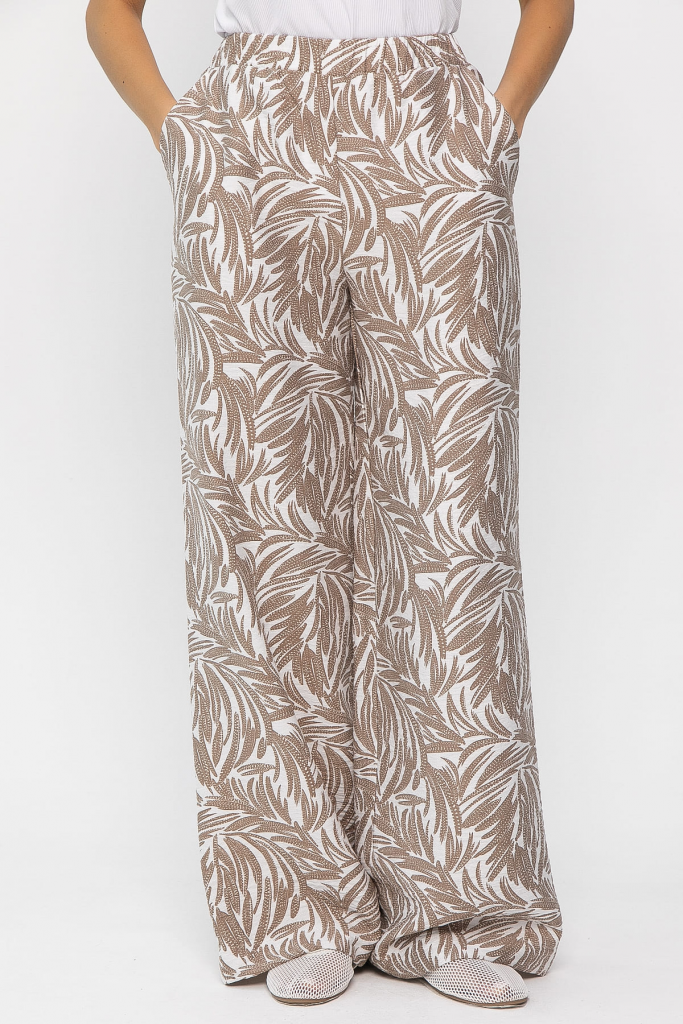 Ощутите комфорт и стиль в жаркие дни с этими брюками из вискозы! Свободный крой и пояс на резинке обеспечат вам свободу движений на протяжении всего дня. Яркий принт добавит вашему образу летнего шарма. Удобные боковые карманы сделают эти брюки еще более практичными.