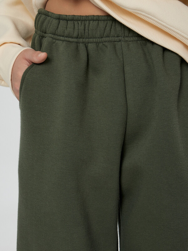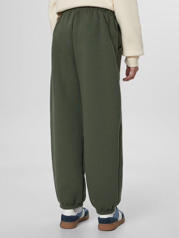 Брюки- джогеры свободного силуэта с карманами с «отрезными бочком». Пояс цельнокроеный с внутренней эластичной тесьмой 40RV. Низ изделия обработан швом в подгибку, внутрь застрочена эластичная тесьма 20RV.