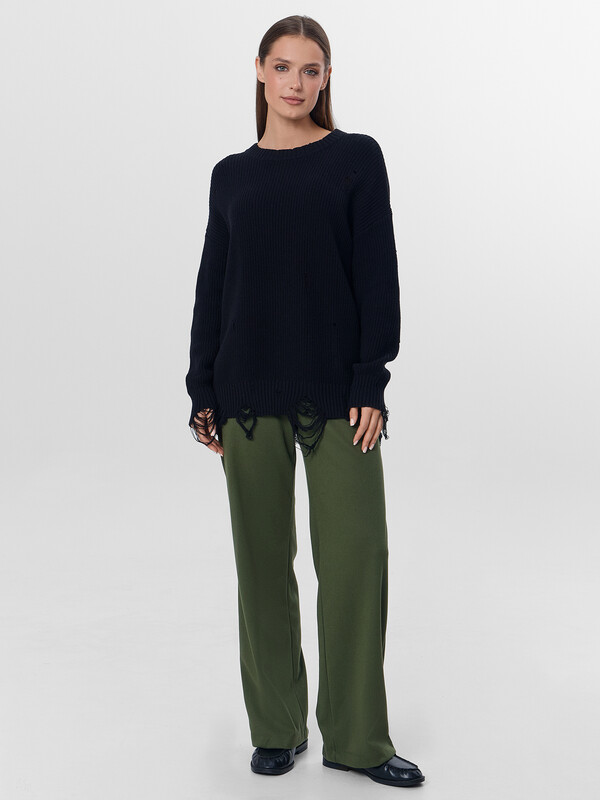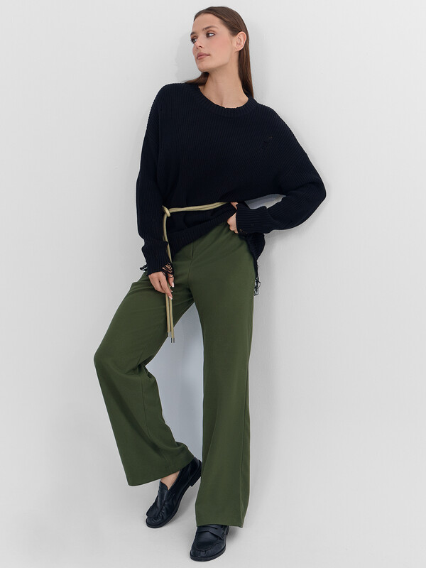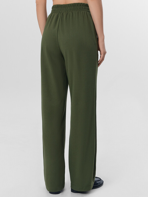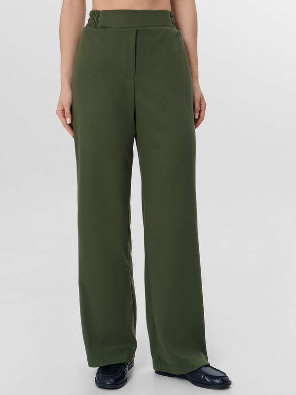Натуральный зеленый оттенок и актуальный крой позволяют сочетать брюки с разными верхами — от объемных свитеров до строгих блуз. Идеальный выбор для офиса, учебы или прогулок, где важны комфорт и стиль.