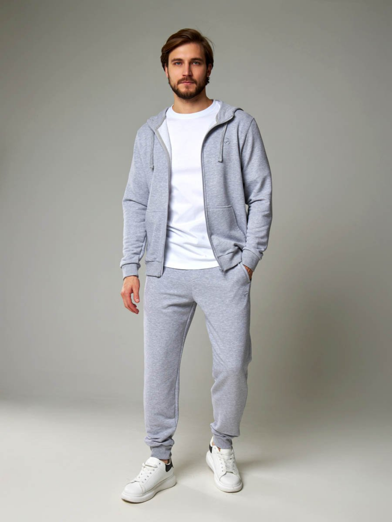 Трикотажные мужские брюки из хлопка с добавлением полиэстера, мягкие и приятные на ощупь, не сковывают движения, обеспечивая максимальный комфорт. На передних половинках вместительные карманы. По низу брюки собраны мягкой трикотажной резинкой. Пояс на резинке. Дополнительно в поясе имеется шнур.
