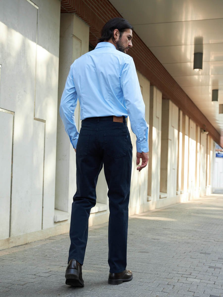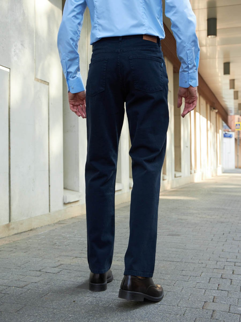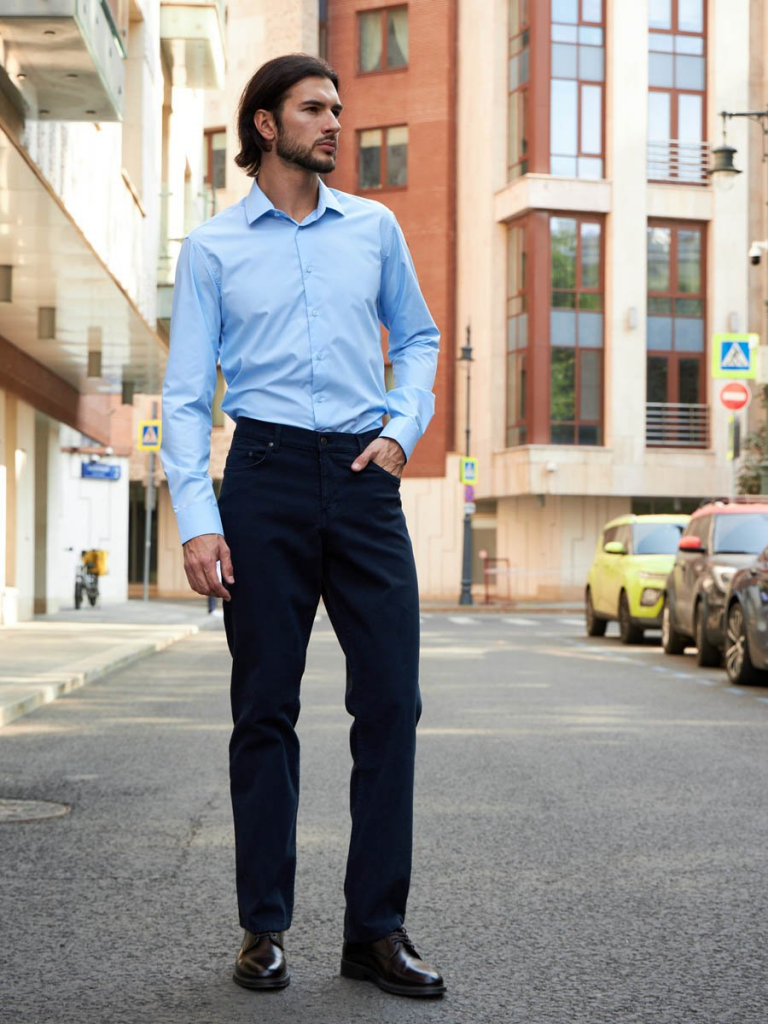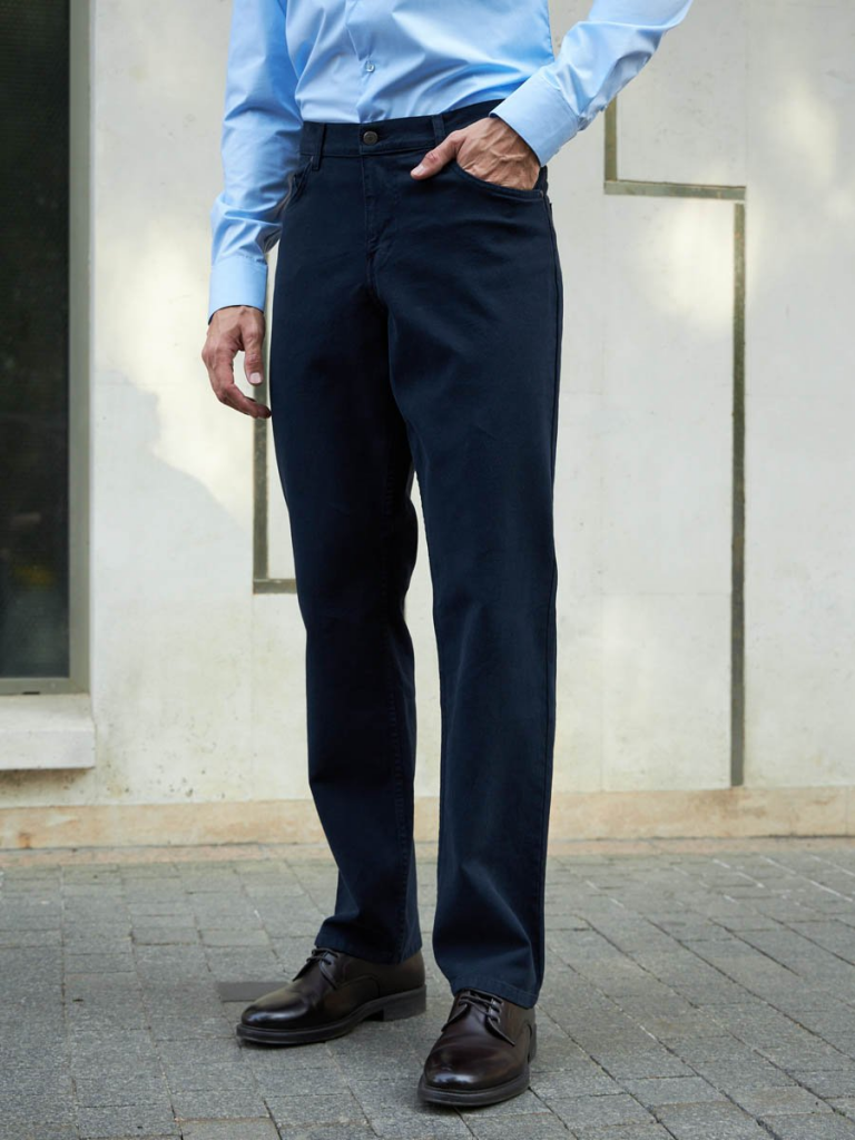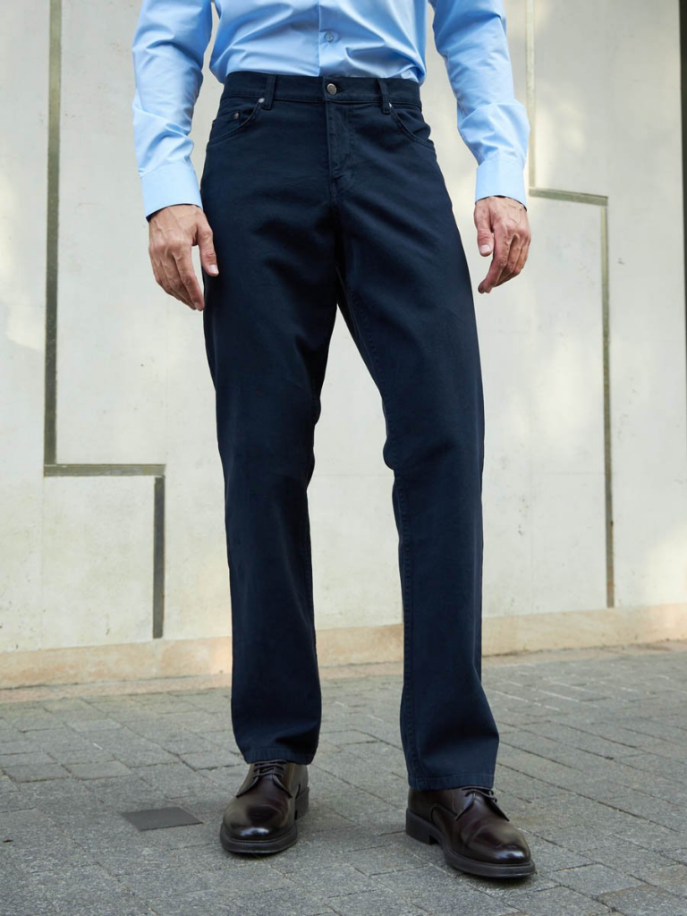 Мужские джинсы с пятью карманами. Посадка Regular fit (полуоблегающие по бедру), немного дополнительно заужены к низу по сравнению с моделью 0965, высокая талия. Застежка на молнии. Выполнены из слабоэластичной мягкой ткани gabardine stretch с небольшим peach (персиковым) эффектом по лицевой поверхности ткани. Крашение Garment dayed, т. е. покрашены в готовом виде после пошива.