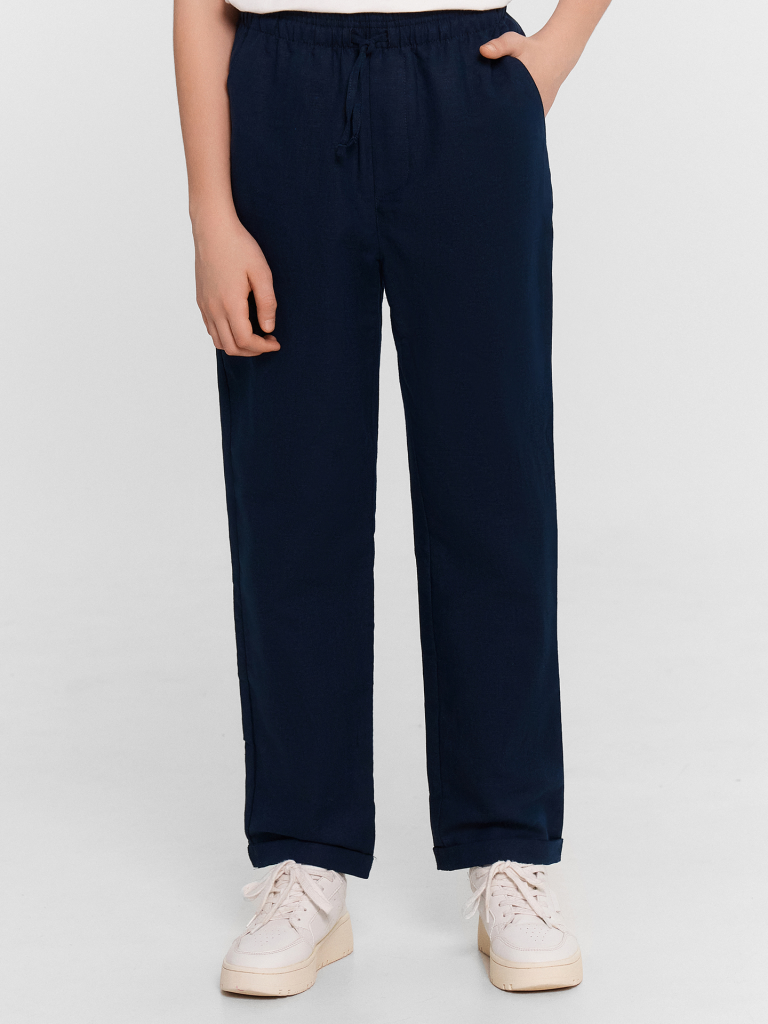 Брюки для мальчиков, выполненные из хлопка и льна, предоставят вашему ребенку максимальный комфорт и стиль. Хлопок делает ткань мягкой и дышащей, а лён обеспечивает легкость и воздухопроницаемость. В сочетании они создают идеальный материал для повседневной носки, обеспечивая удобство и долговечность. Средняя посадка, эластичный пояс и боковые карманы добавляют практичности, а отвороты на нижней части брючин придают стильный вид. В таких брюках ваш ребенок будет чувствовать себя комфортно и уверенно в любой ситуации.
