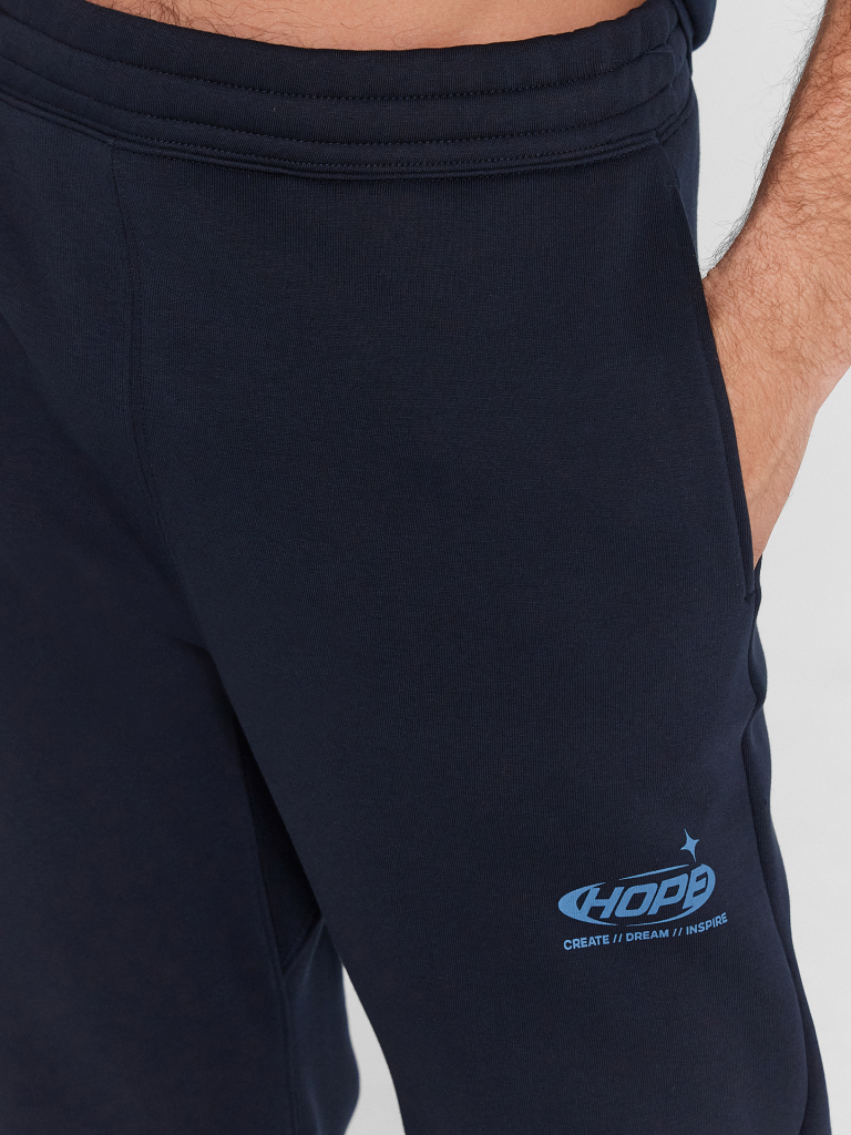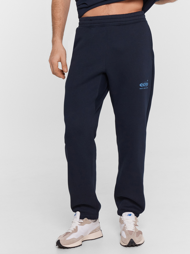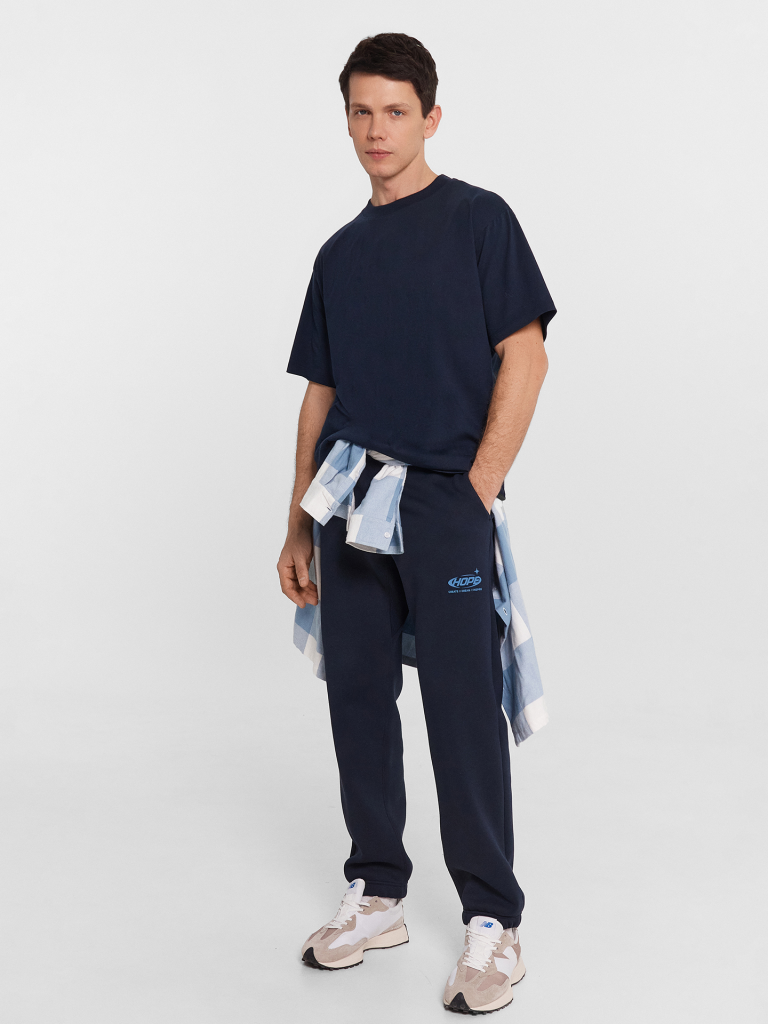 Нижние срезы брюк обработаны швом вподгибку с эластичной тесьмой внутри.