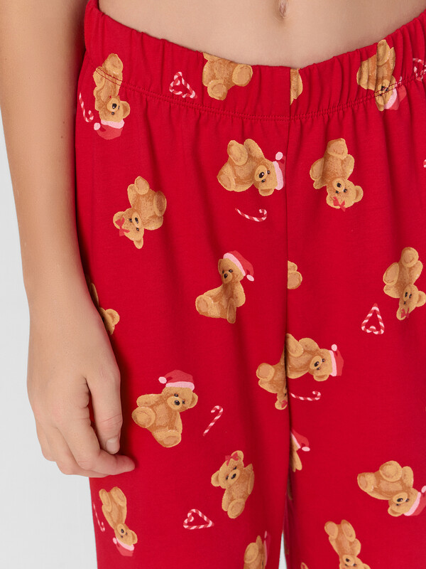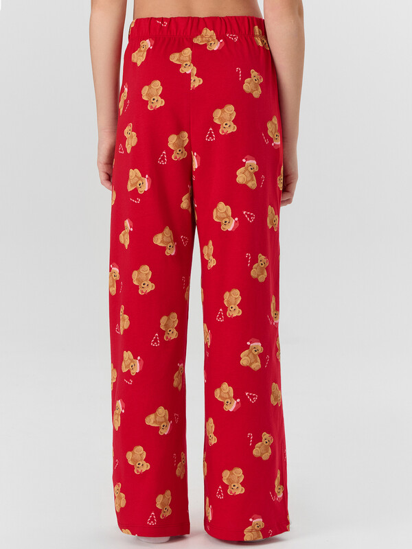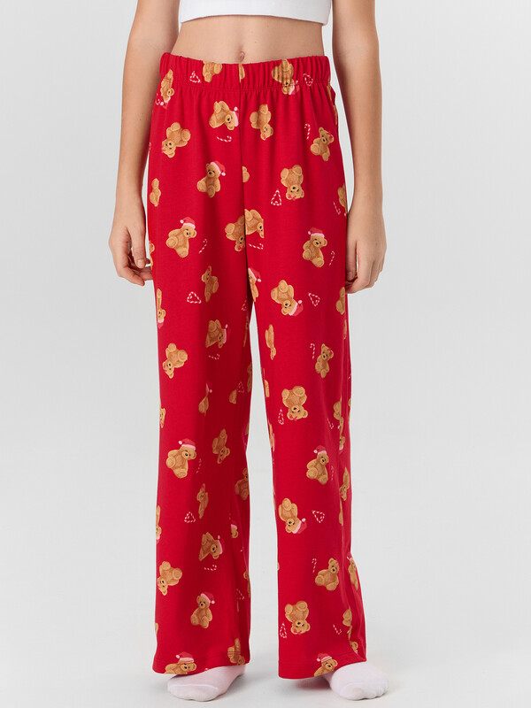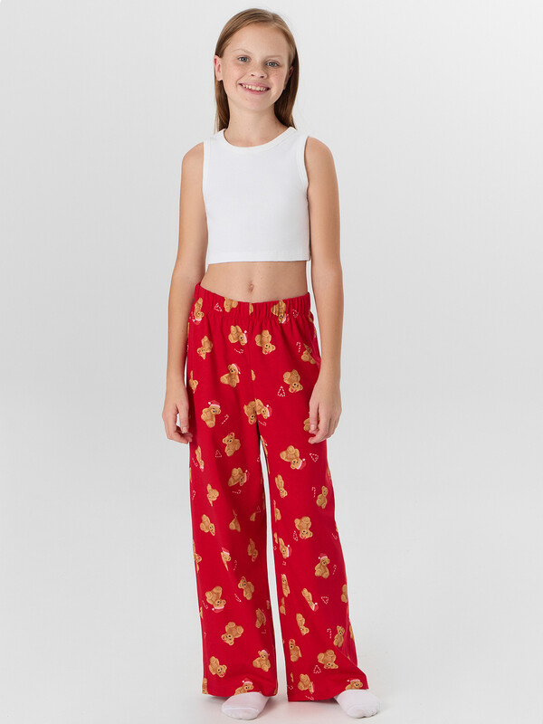 Брюки домашние слегка расширены к низу. Пояс цельнокроеный с эластичной тесьмой внутри (Rv40), ширина 40 мм.