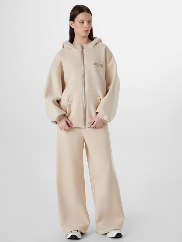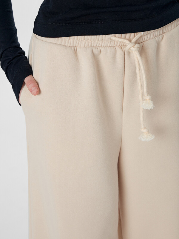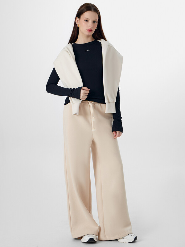 Бежевые брюки оверсайз из линейки Premium Base — ваш идеальный повседневный спутник, где каждая деталь продумана для полного комфорта. Мягкий пояс с регулируемым шнурком внутри легко подстроится под вашу фигуру, сохраняя аккуратный вид при активном движении.