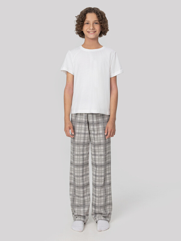 Брюки для мальчиков из хлопковой кулирки — практичное решение для домашнего гардероба. Модель отличается прямым силуэтом и полной длиной, что обеспечивает комфорт в движении и позволяет сохранять тепло в прохладной обстановке. Эластичный пояс мягко фиксирует изделие на талии, не сдавливая кожу и даря ощущение свободы. Ткань — хлопковая кулирка — обладает хорошей воздухопроницаемостью, отлично сохраняет форму после стирки и не вызывает раздражений, что особенно важно для чувствительной детской кожи. Обработка низа швом вподгибку делает изделие визуально аккуратным, повышает его износостойкость и добавляет завершенности силуэту. Эти брюки отлично подойдут для отдыха, домашних игр или сна, оставаясь универсальной частью повседневного образа. Их лаконичный дизайн легко сочетается с различными футболками, лонгсливами или худи, позволяя создавать удобные и стильные домашние комплекты.