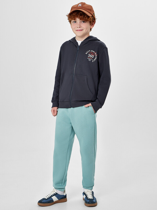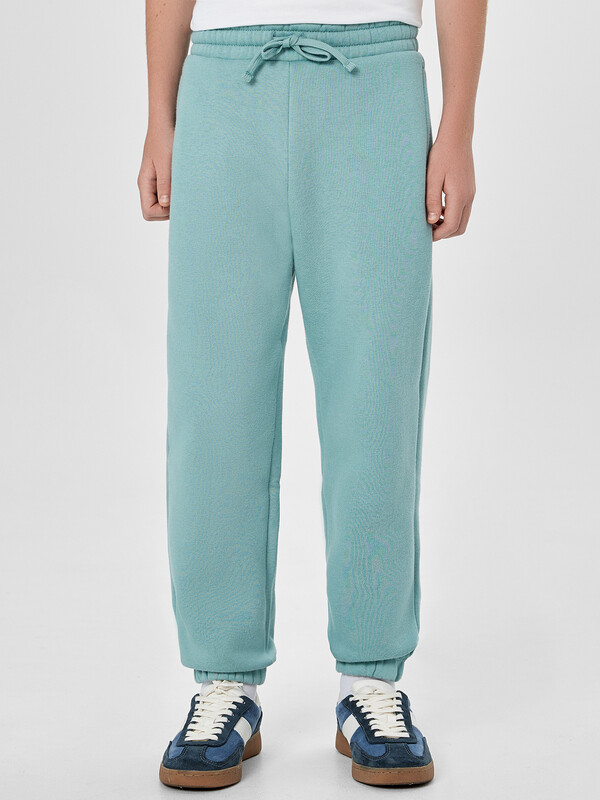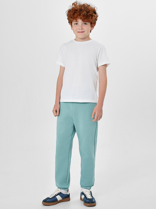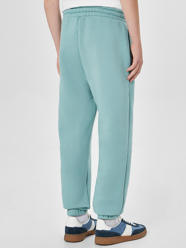 Брюки изготовлены из трикотажного полотна футер. Брюки свободного силуэта. Сиденье немного спущено. В боковых швах обработаны карманы. Подкладка карманов из кулирки.