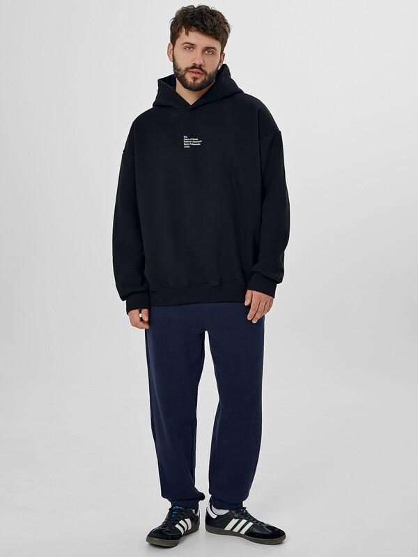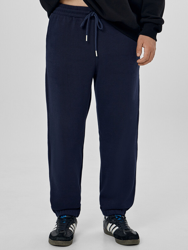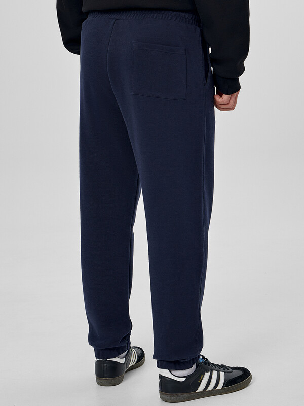 Сине-черные мужские брюки джоггеры сочетают современный дизайн и практичность. Модель с прямой посадкой и зауженным низом создает аккуратный силуэт. Отрезной пояс со встроенной эластичной тесьмой и регулируемым шнуром обеспечивает индивидуальную посадку.