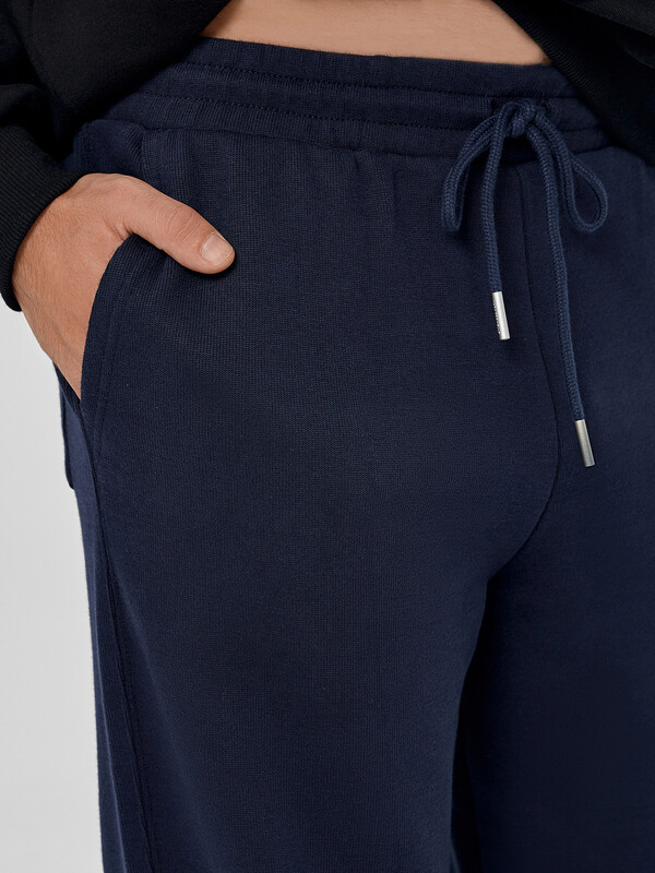 Функциональные карманы-хулиганы в боковых швах с подкладкой из кулирки удобны для хранения мелочей. Накладной карман на задней части дополняет практичность модели. Нижние срезы брючин обработаны эластичной тесьмой для комфортной посадки по длине.