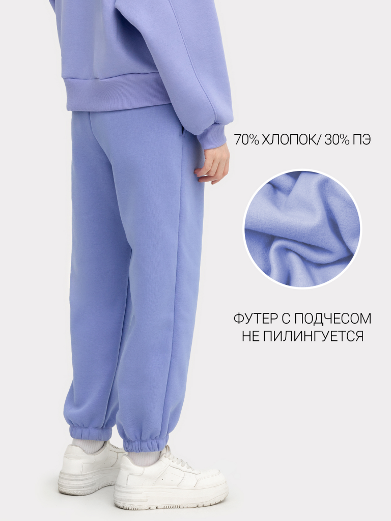 Стильные брюки женские из футера с подчесом. В составе полотна преобладает натуральный хлопок. Модель имеет модный оверсайз силуэт, который не сковывает движений. Удобные боковые функциональные карманы, высокая линия талии, пояс с эластичной резинкой. Идеально подойдут для спортивных занятий и прогулок, путешествий и активного отдыха. Если вам нужны брюки спортивные женские, то эта модель для вас. Широкий размерный ряд в линейке позволяет выбрать модель девушкам с пышными формами plus-size. Цветовая гамма разнообразная, много красивых пастельных и ярких цветов брюк, каждая модница найдет свой идеальный вариант. Рекомендуем!