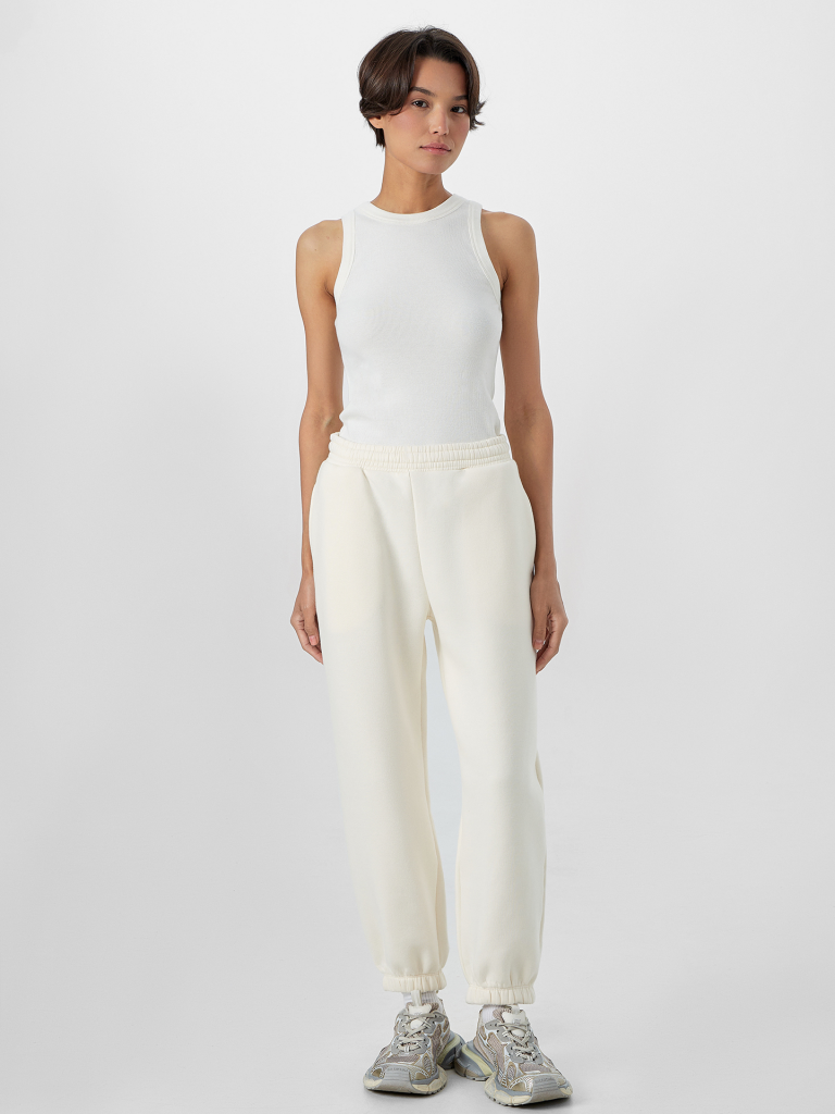 Женские спортивные брюки из футера с мягким подчесом — это идеальный выбор для тех, кто ценит комфорт и стиль. Такой материал обеспечивает отличное сохранение тепла, что делает эти брюки идеальными для прохладной погоды. Кроме того, материал приятен к телу и долговечен, что обеспечивает длительный срок службы изделия. В составе материала преобладает натуральный хлопок, который добавляет ткани дышащие свойства и гипоаллергенность, что важно для чувствительной кожи. Эта модель имеет боковые карманы и стильный оверсайз-силуэт, который не сковывает движений. Высокая линия талии с эластичным поясом гарантирует комфорт и индивидуальную посадку на фигуре. Брюки Mark Formell идеально подойдут для спортивных занятий, прогулок, путешествий и активного отдыха. Широкий размерный ряд позволяет выбрать модель девушкам plus-size, а разнообразная цветовая гамма включает как пастельные, так и яркие оттенки, что позволяет каждой ценительнице комфорта и стиля найти свой идеальный вариант.