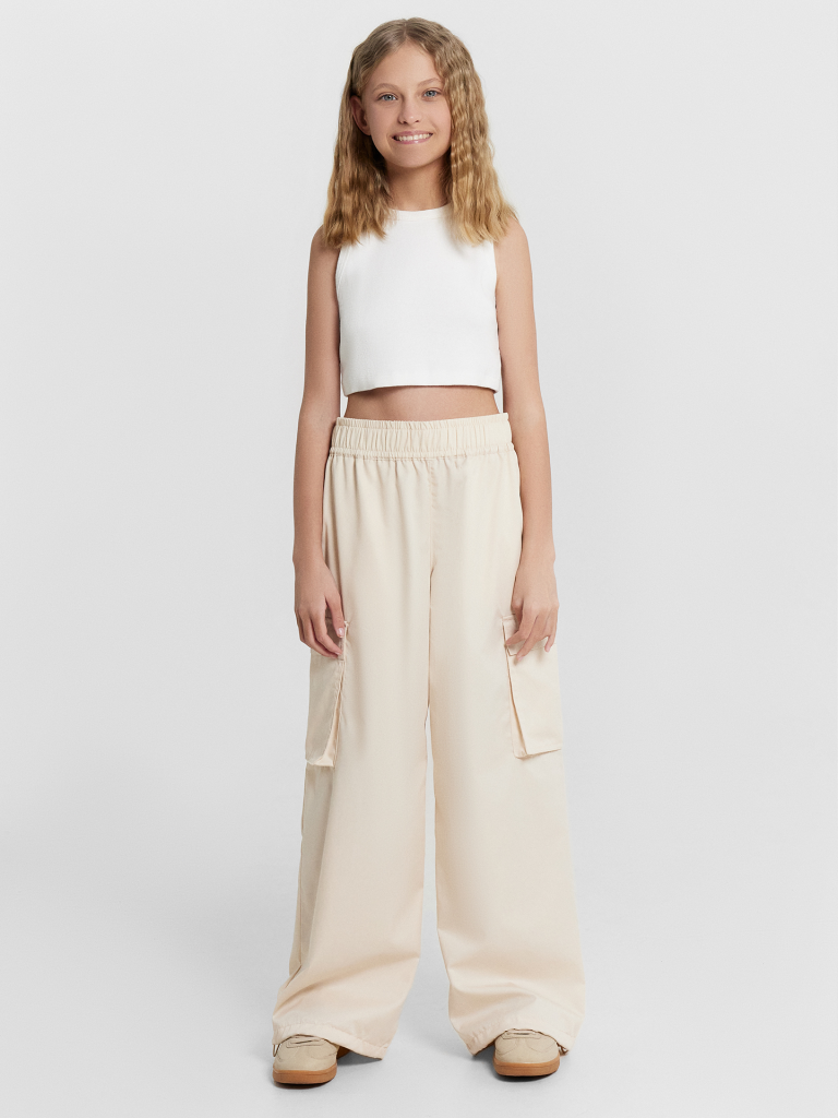 Брюки карго для девочек — стильное и практичное решение, которое легко добавит оригинальности любому образу! Модель свободного кроя обеспечивает комфорт и свободу движений, что делает их отличным выбором для активных дней. Эластичная талия гарантирует удобную посадку, а наличие боковых и накладных карманов с клапанами добавляет функциональности и завершает современный дизайн. Эти детали не только практичны, но и подчеркивают динамичный стиль брюк. Изделие выполнено из смесового материала с добавлением натурального хлопка, что делает ткань мягкой, приятной к телу и долговечной. Такой материал обеспечивает комфорт при носке и сохраняет аккуратный вид после многочисленных стирок. Эти брюки карго — отличный вариант для создания стильных и удобных образов на каждый день!