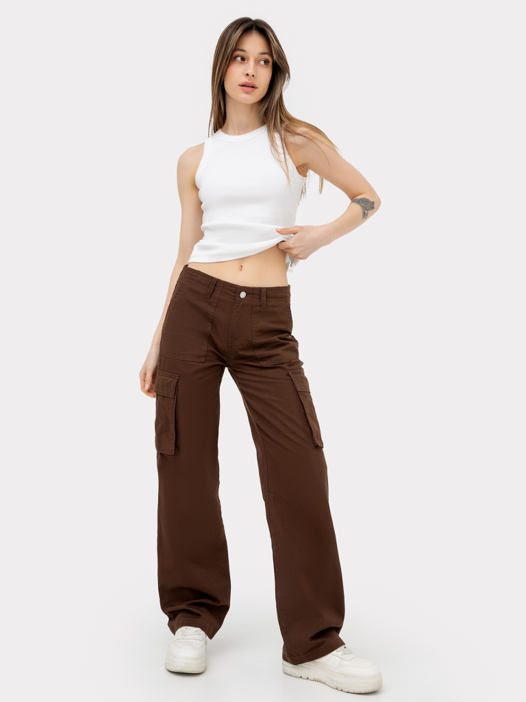 Стильные женские брюки карго – это удобный и практичный вариант для повседневного гардероба. Они отличаются оригинальным дизайном. Карманы на бедрах и боковые карманы добавляют им эстетику и функциональность. Выполнены из высококачественного хлопка. Материал мягкий и приятный наощупь. Отлично держит форму в процессе носки. Такая модель хорошо сочетается с различными типами обуви – от кед и кроссовок до лодочек и ботинок. Их можно носить как с обычной футболкой или свитшотом для создания лаконичного образа, так и с блузой и туфлями для более стильного и элегантного лука. Понравятся активным и практичным девушки, которые ценят удобство и функциональность в одежде. Рекомендуем эти модные карго для весны, лета и демисезона!