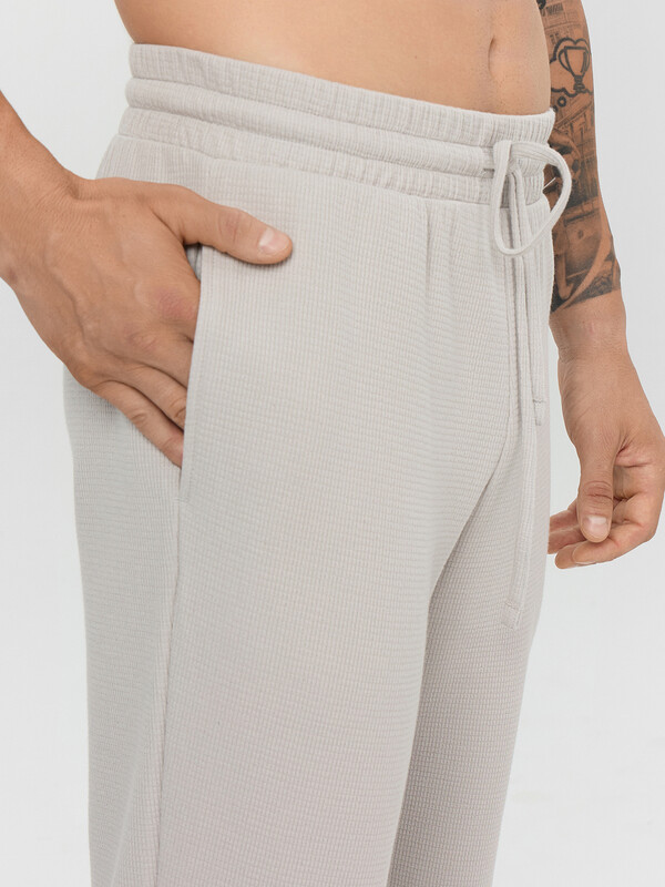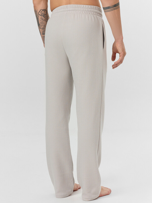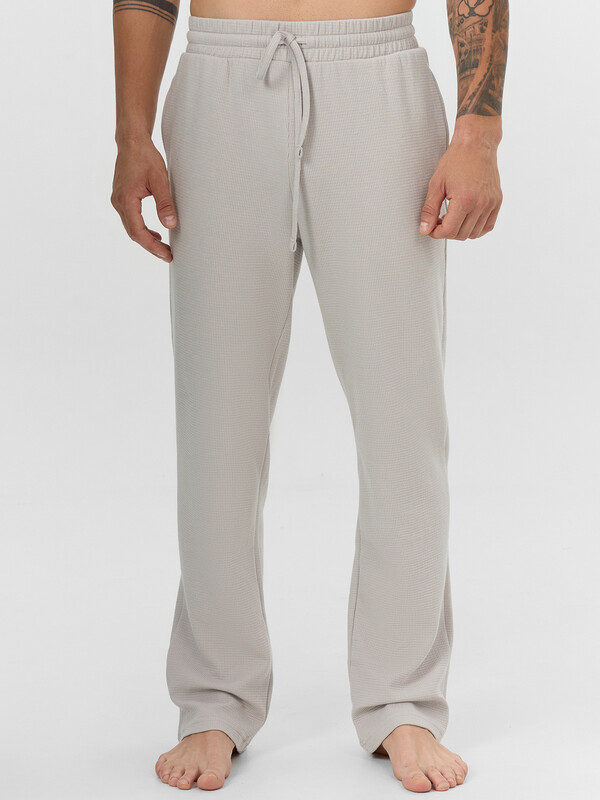 Мужские домашние брюки прямого кроя созданы для максимального комфорта в повседневной носке. Классическая линия талии с отрезным поясом и широкой эластичной тесьмой внутри обеспечивает мягкую фиксацию без давления. На передней части пояса добавлены функциональные петли с шнуром-бейкой — это позволяет регулировать посадку под индивидуальные предпочтения.