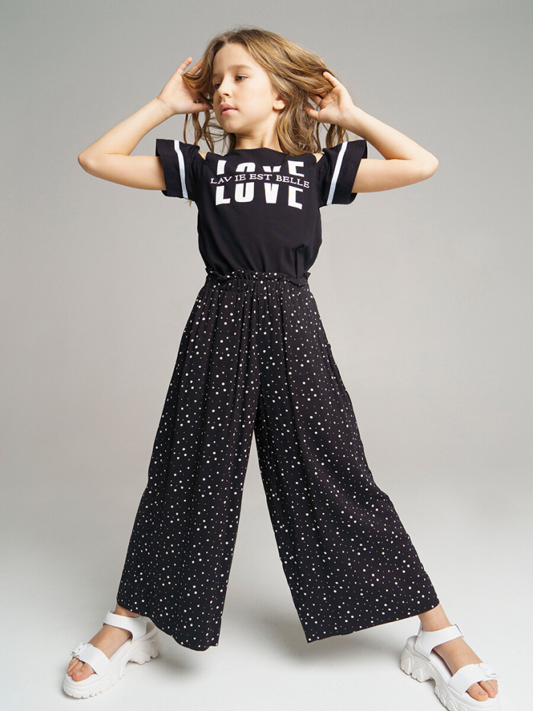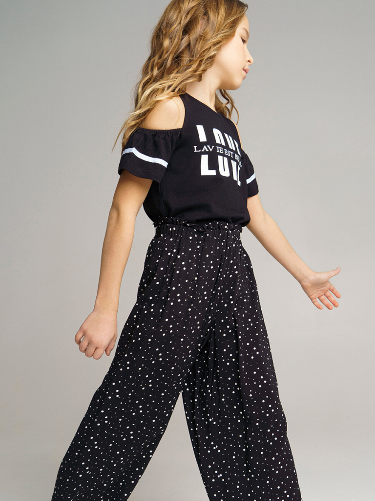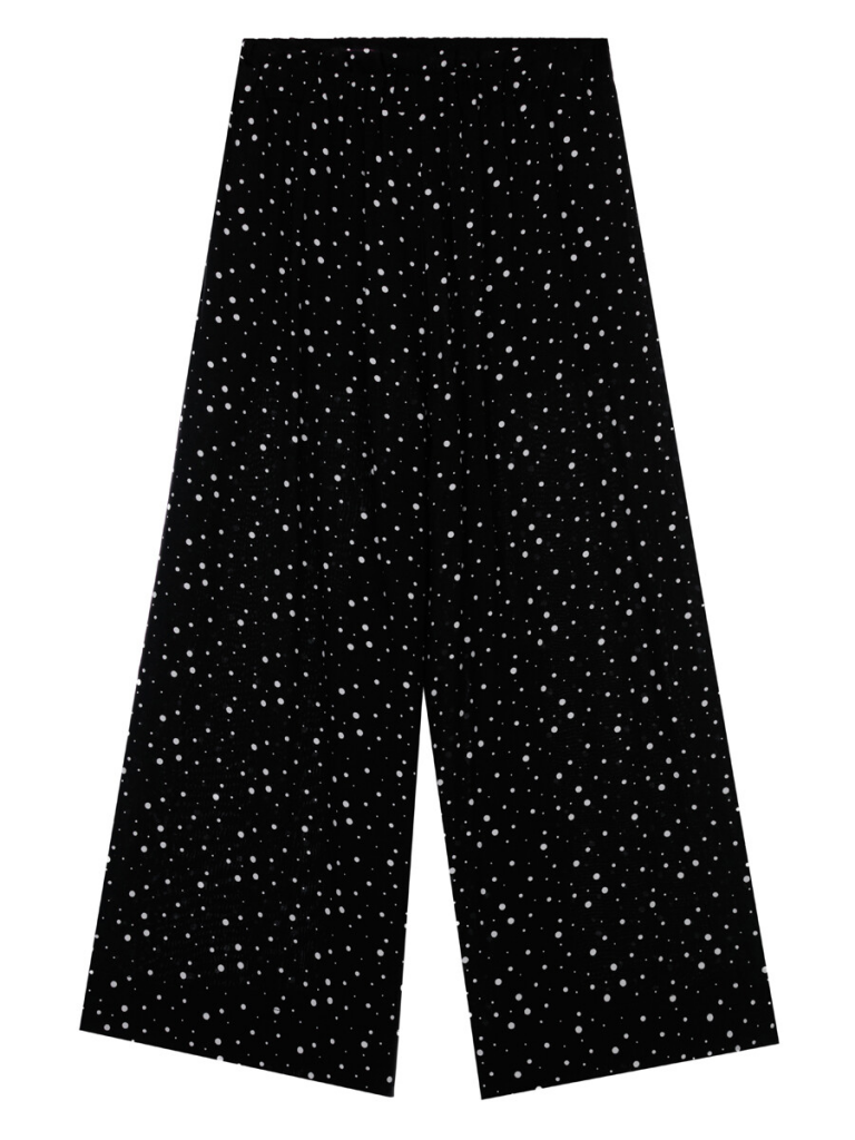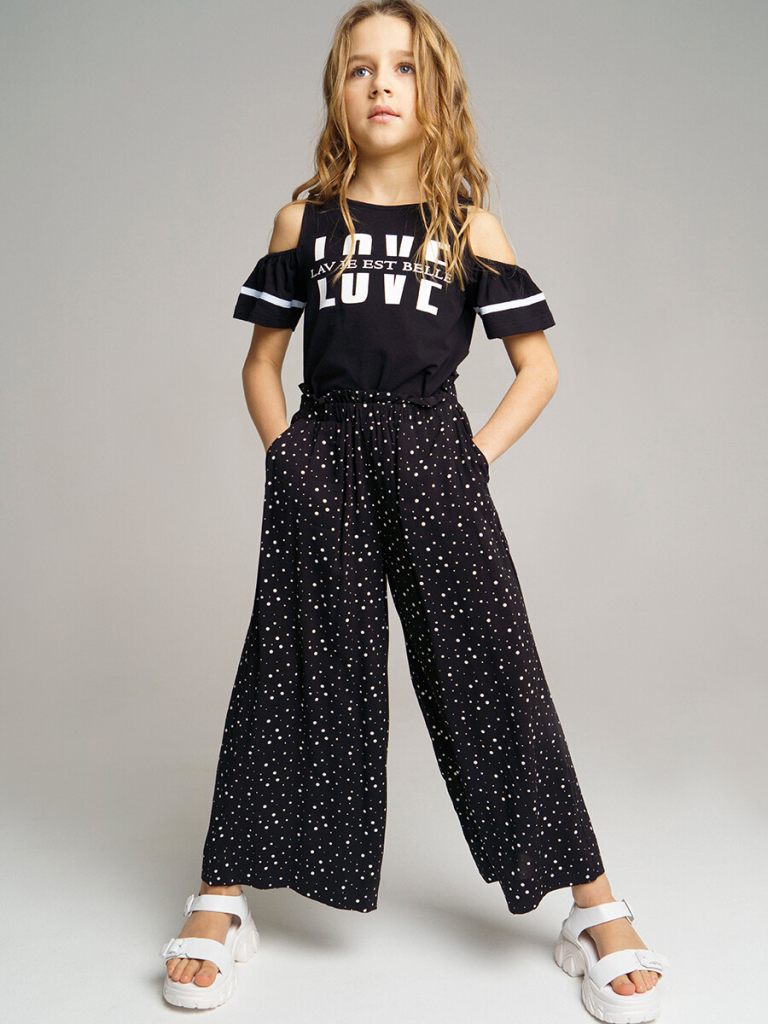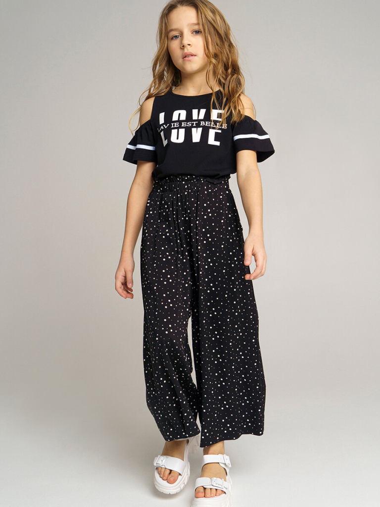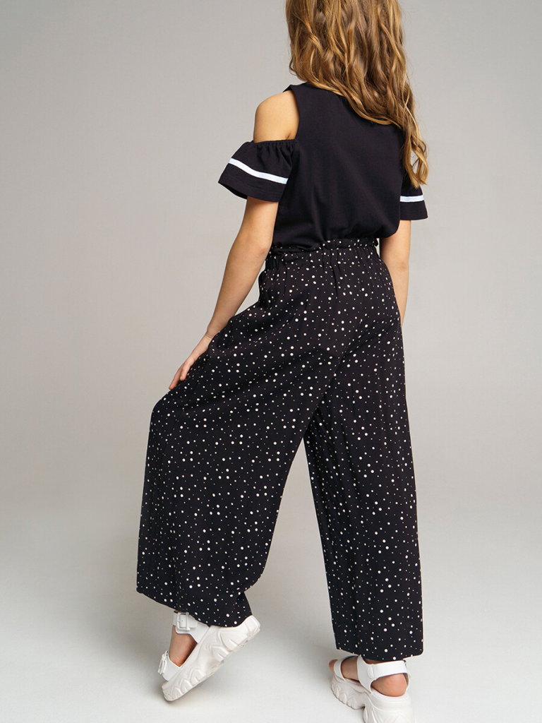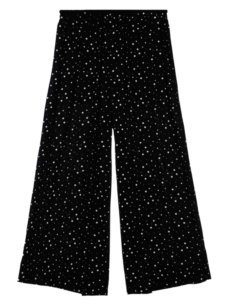 Брюки-кюлоты из вискозы. Карманы в боковых швах. Эластичный пояс со шнурком. Благодаря оптимальной посадке брюки не сползают при движении.