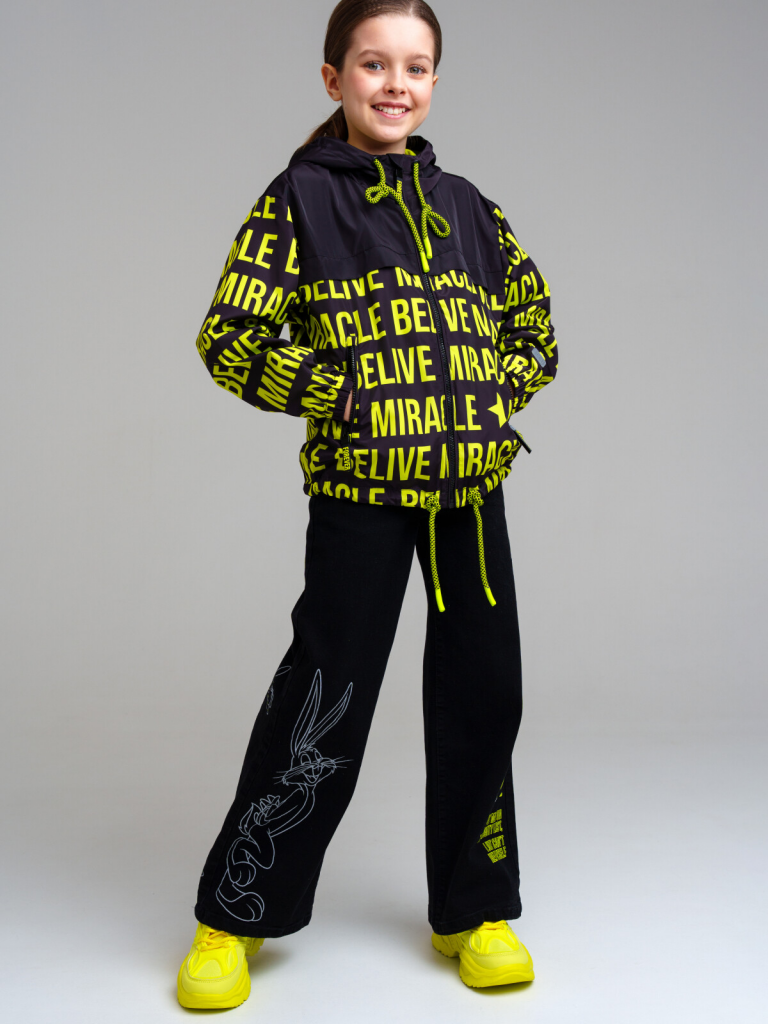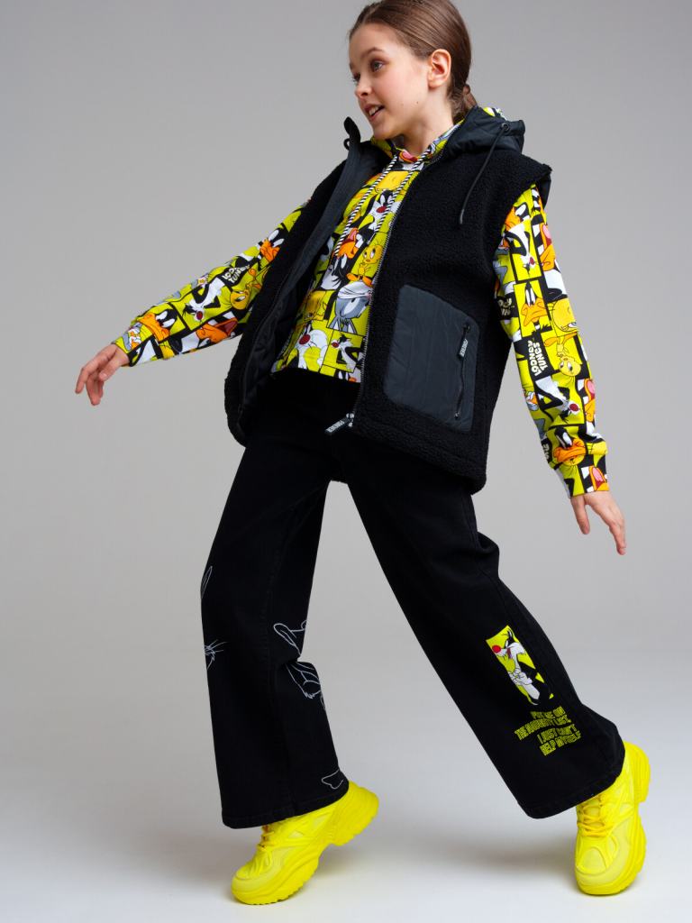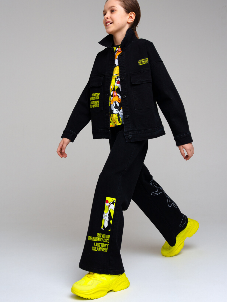 Брюки текстильные джинсовые для девочек черный