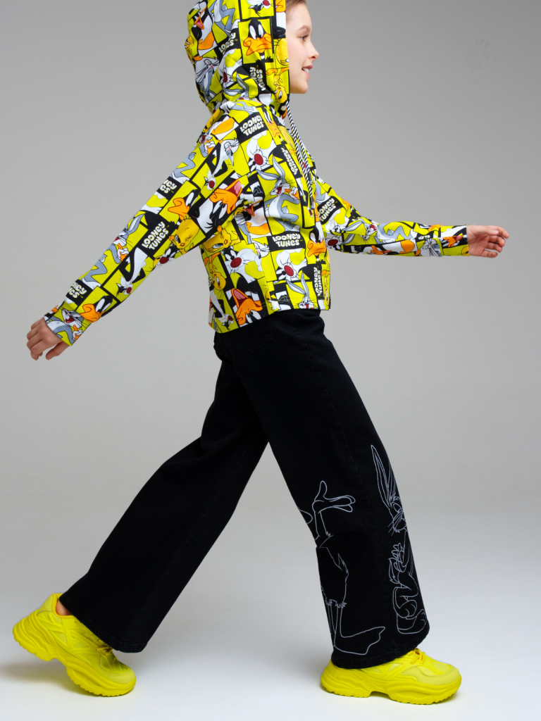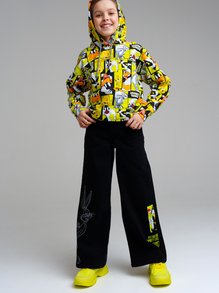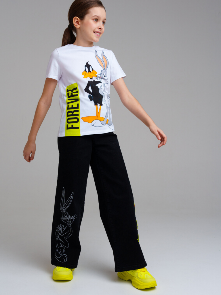 Джинсы для девочки. Застежка на пуговицу, пояс с внутренней утяжкой. Крой Wide leg - это свободная посадка и расклёшенные от бедра штанины. Высокая посадка.