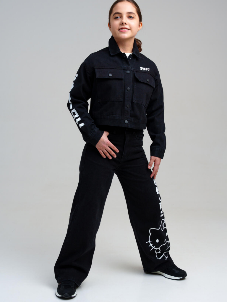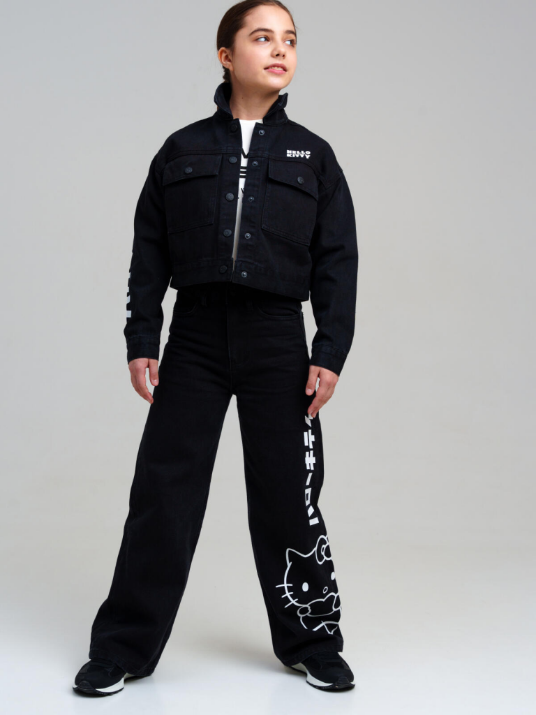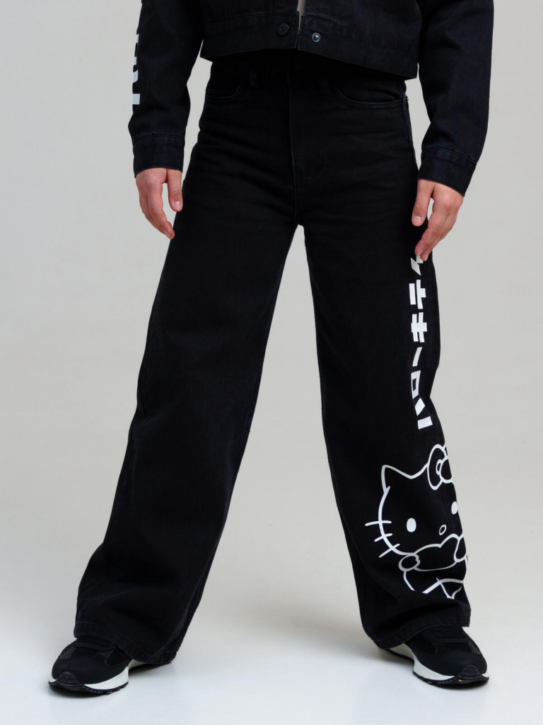 Джинсы для девочки подростка. WIDE LEG - свободная посадка и расклёшенные от бедра штанины. Высокая посадка. Пояс с внутренней утяжкой. Застежка на молнию и болт. Функциональные карманы. Модель выполнена из качественного и плотного текстиля.