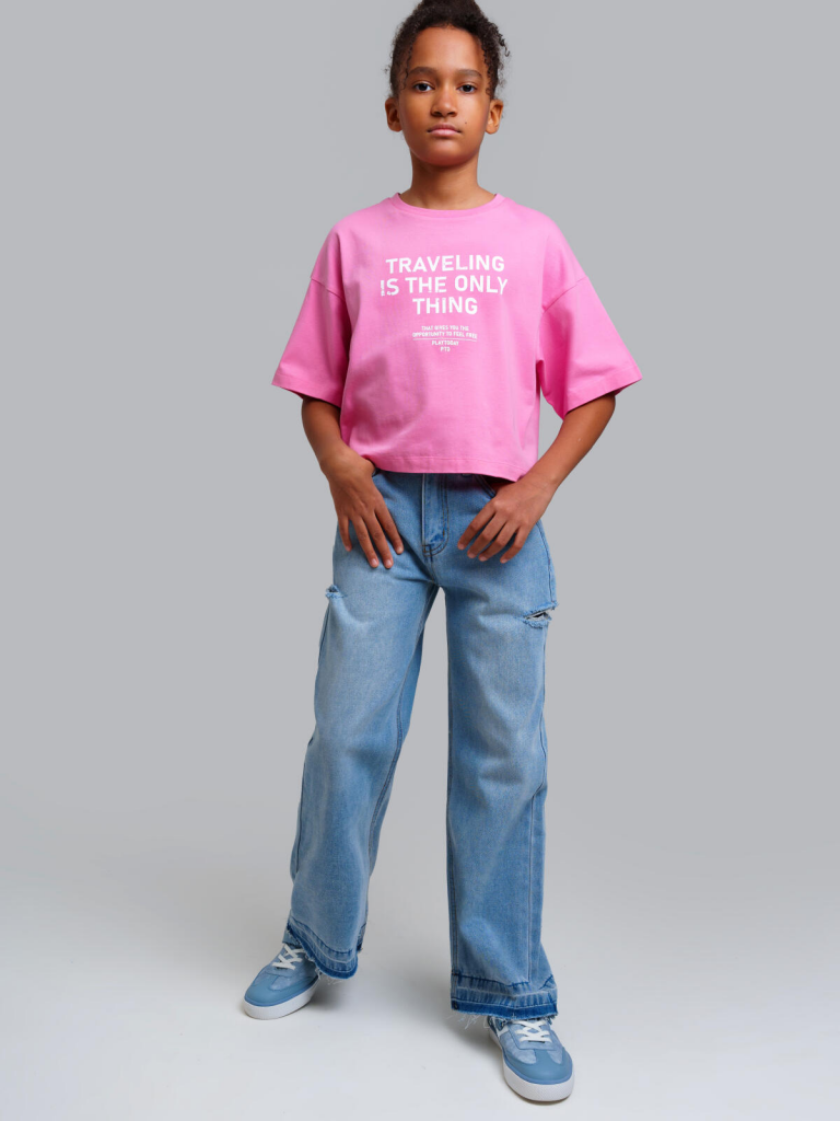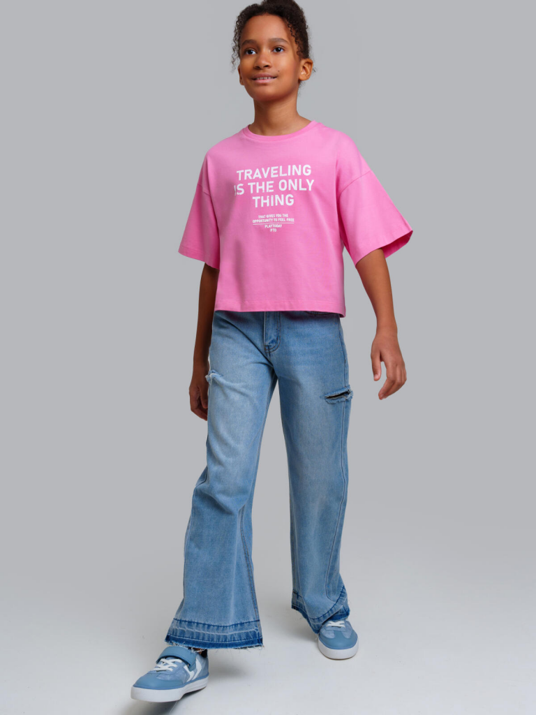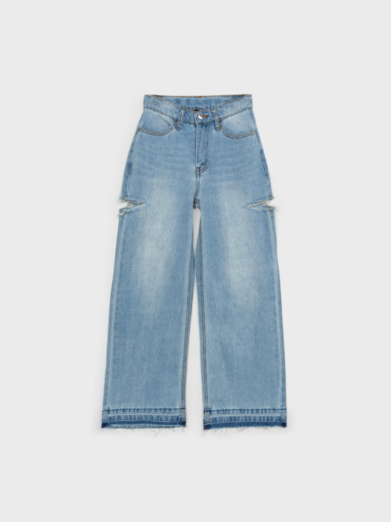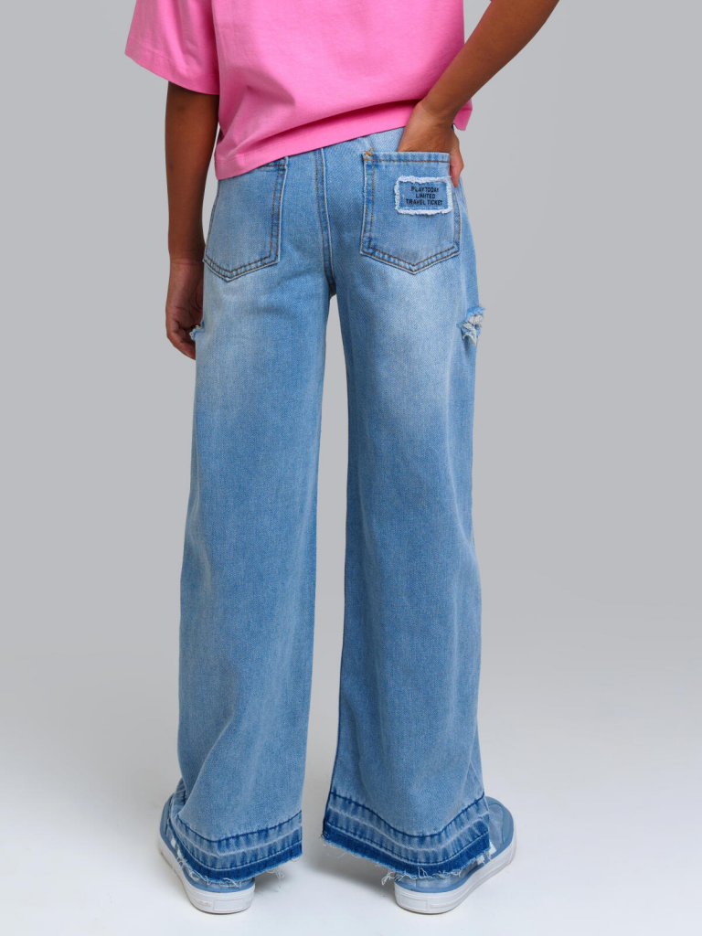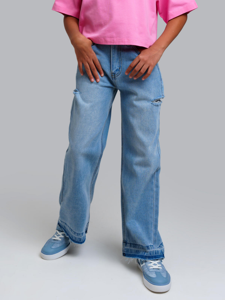 Джинсы для девочки подростка. WIDE LEG - свободная посадка и расклёшенные от бедра штанины. Высокая посадка. Внутренняя утяжка. Внутренняя утяжка. Застежка на молнию и болт. 4 кармана. Модель выполнена из качественного и плотного текстиля.
