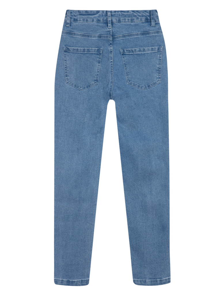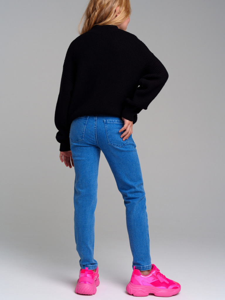 Джинсы из эластичного денима. Посадка regular fit - классический крой со слегка зауженным силуэтом от колена. Комфортная посадка за счет внутренней утяжки. Застежка на молнию и пуговицу.