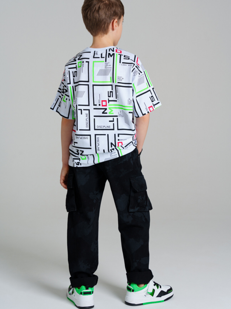 Джинсы из эластичного денима. Посадка comfort fit - свободный крой брючин. Боковые карманы и карманы с клапанами. Эластичный пояс с тесьмой позволяет легко надевать джинсы и утягивать до идеальной посадки в зависимости от комплекции ребенка.
