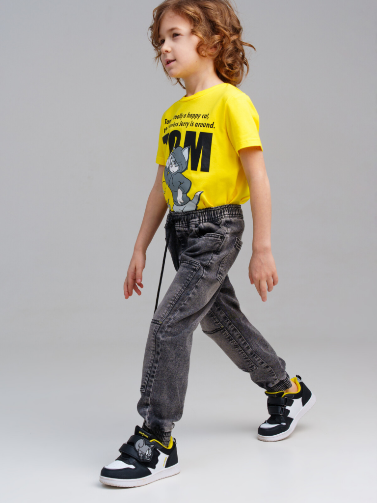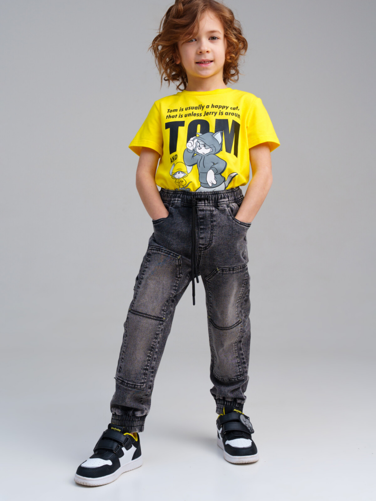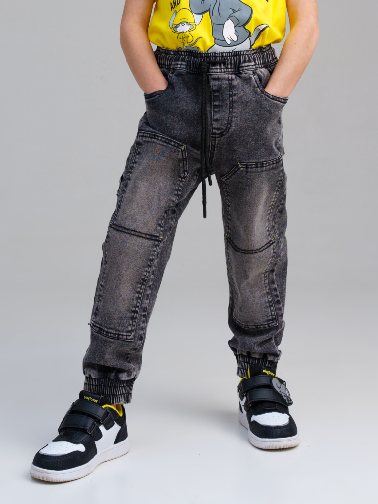 Джинсы детские для мальчика. JOGGER FIT - спортивный крой. Средняя посадка. Джинсы на резинке со шнурком. Модель выполнена из качественного и плотного текстиля.
