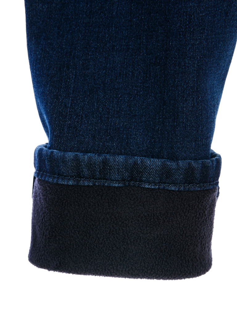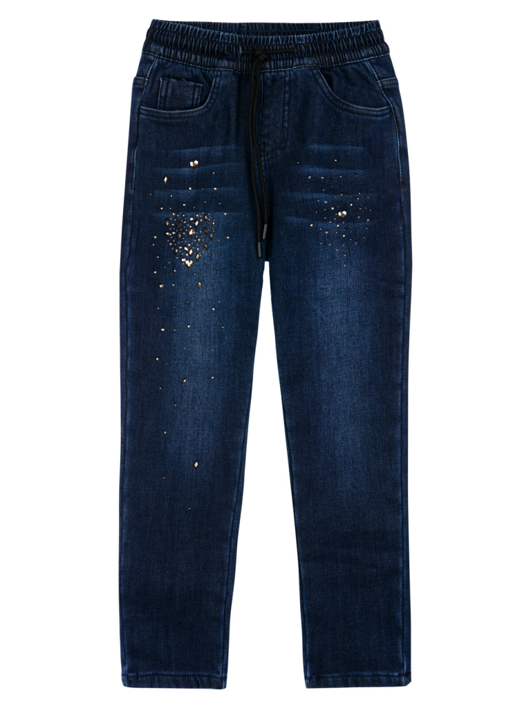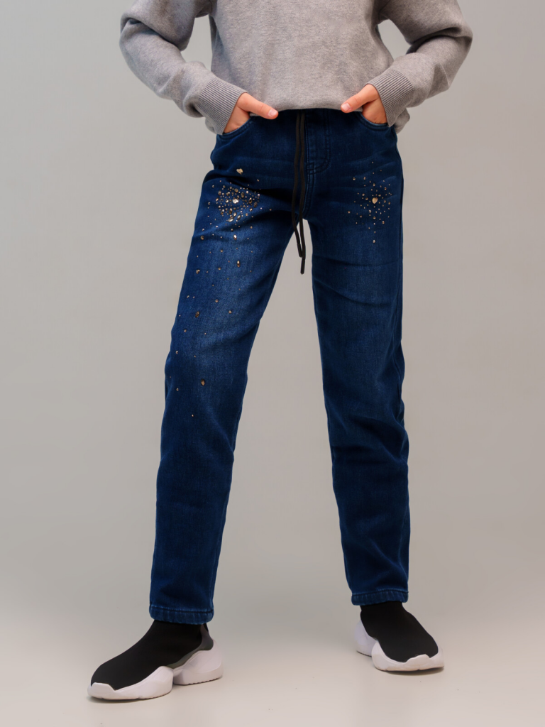 > Брюки текстильные джинсовые утепленные для девочек синий