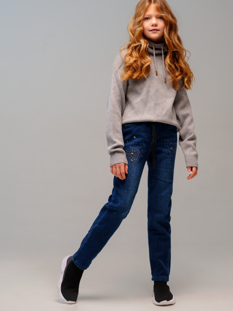 Джинсы с флисом для девочки подростка. Модные утепленные джинсы regular fit (классическая посадка) на резинке со шнурком. Боковые карманы. Модель из капсульной коллекции PREPPY VIBE (ПРЕППИ ВАЙБ). Соберите полный образ в едином стиле!