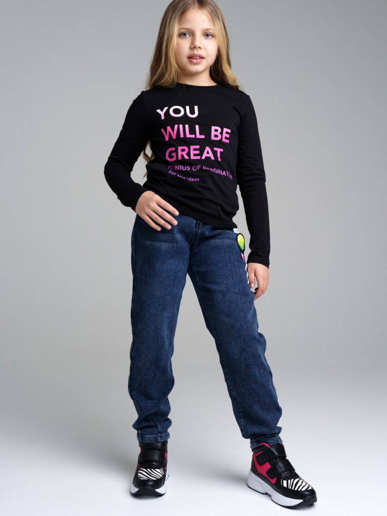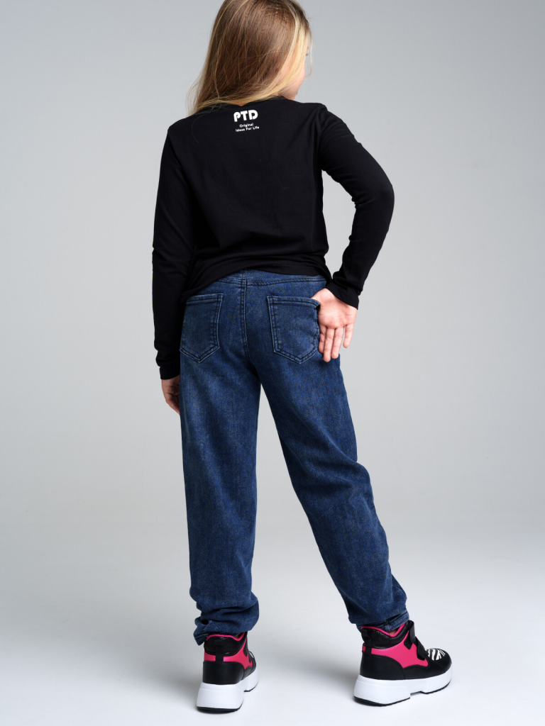 Брюки текстильные джинсовые утепленные флисом для девочек черный