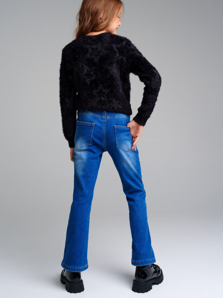 > Брюки текстильные джинсовые утепленные флисом для девочек синий