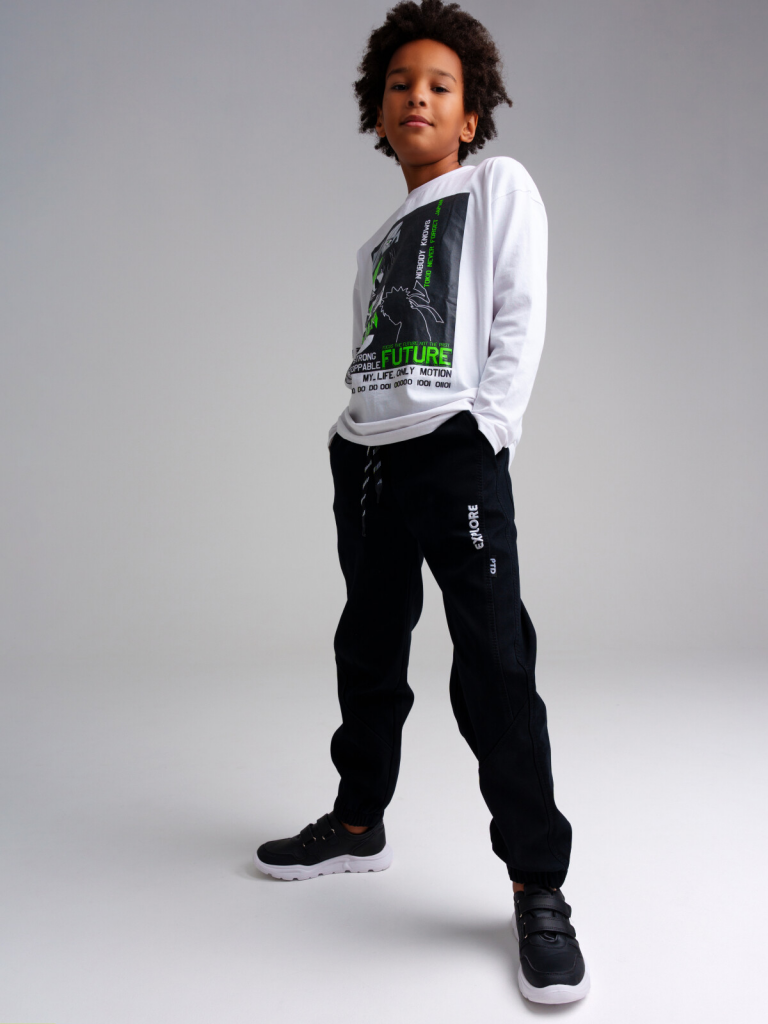 Джинсы, утепленные флисом. Посадка jogger fit - спортивный силуэт, свободные в области паха со слегка заниженной линией шага. Эластичный пояс со шнурком. Манжеты на резинке.