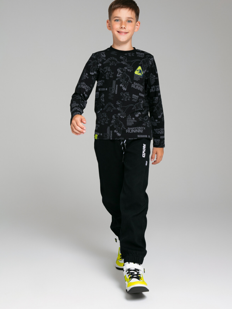 Брюки текстильные джинсовые утепленные флисом для мальчиков черный